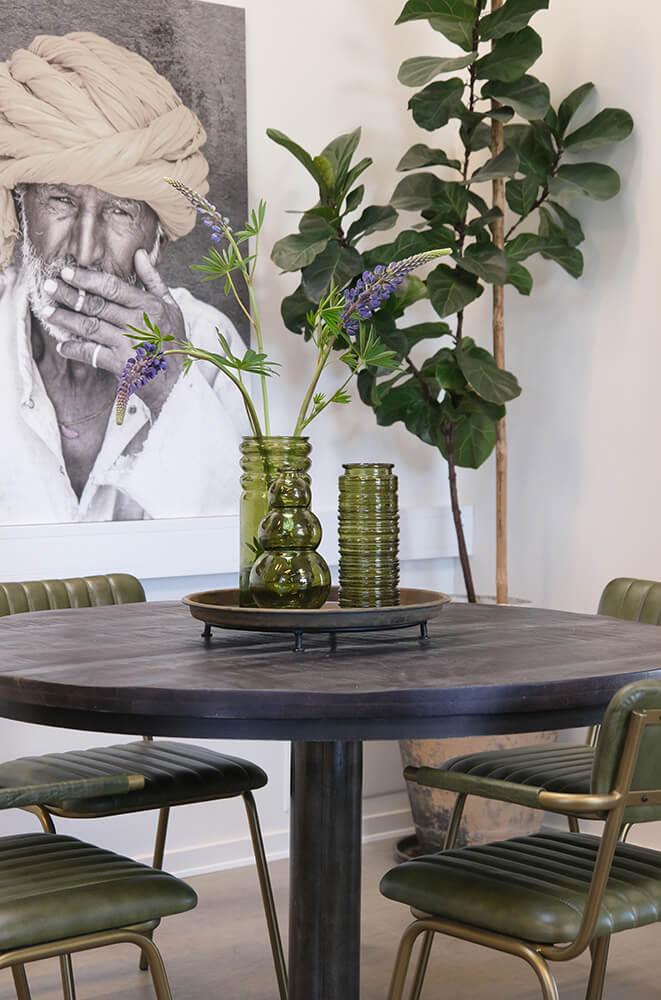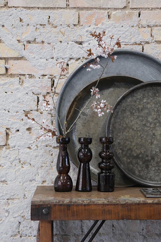Stor enkel bakke i jern i en mørk farve. Bakken er funktionel med sine mange anvendelsesmuligheder, som til opstilling i køkkent med alle specialiteter, på spisebordet med bloklys, blomster, vaser og smukke pynteting. OBS: Vi anbefaler filtdutter under