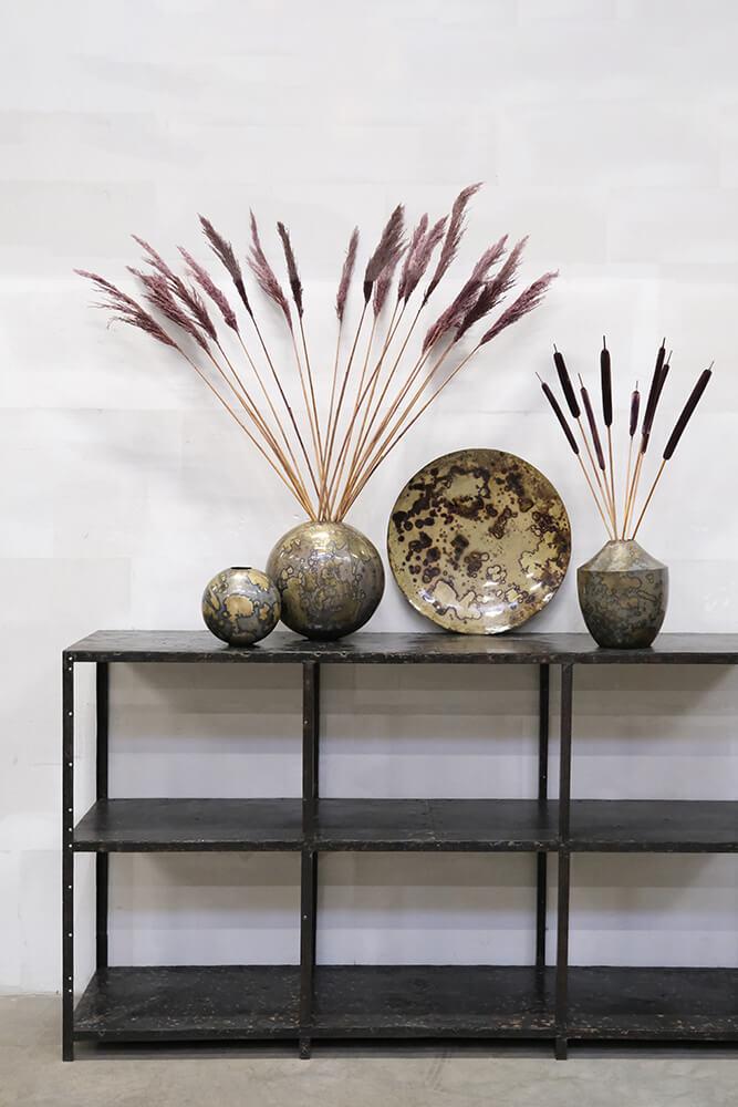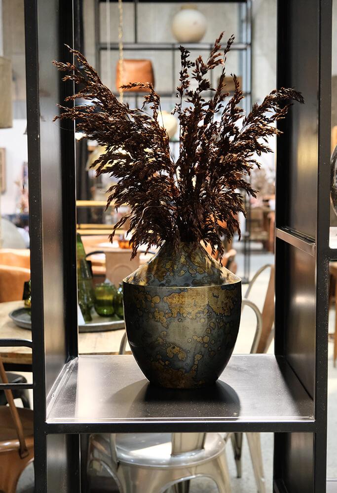 BOSTON - vase fremstillet i metal. Vasen har en markant farvenuance, hvilket der giver vasen en virkelig smuk effekt samt eksklusivt look. OBS. vasen kan IKKE holde vand kun til dekoration.