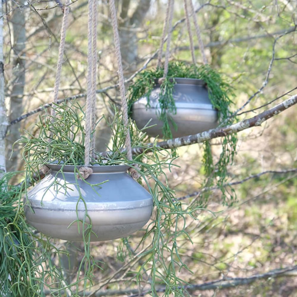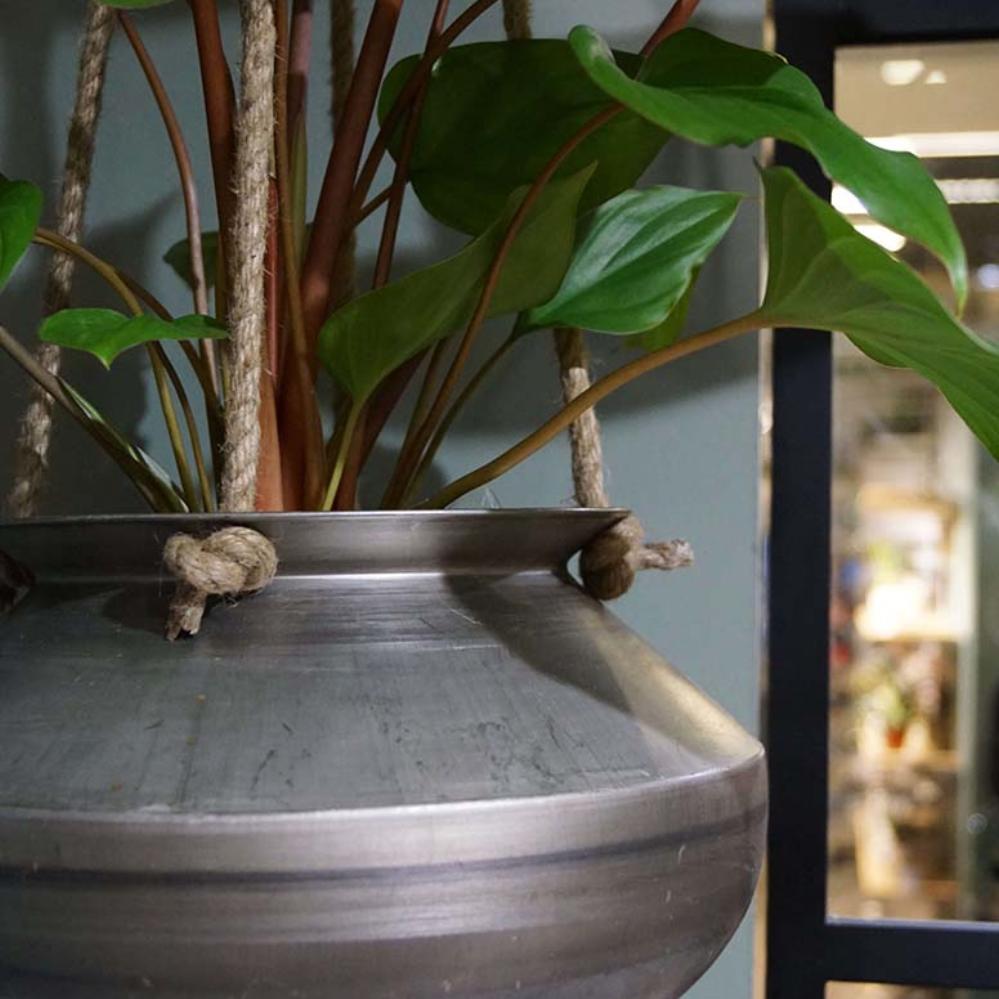 Rustik hængepotte i jern med reb i natur flet. Skab liv med hængeplanter i din indretning, som er blevet moderne som aldrig før og få et unikt look og en botanisk atmosfære ude som inde. Nyd dine yndlings planter overalt, når som helst. Med denne hængepotte kan du skabe hygge i højden.