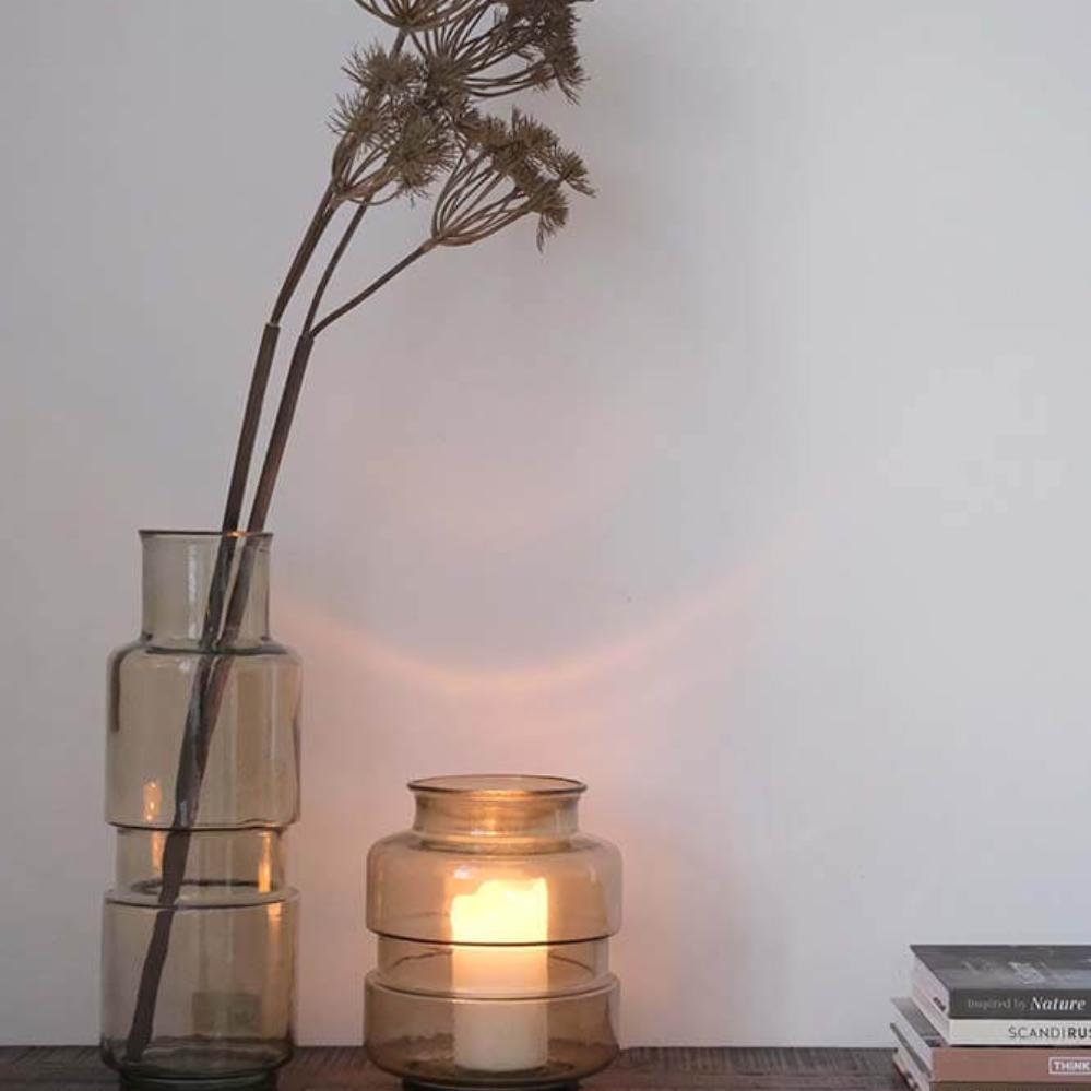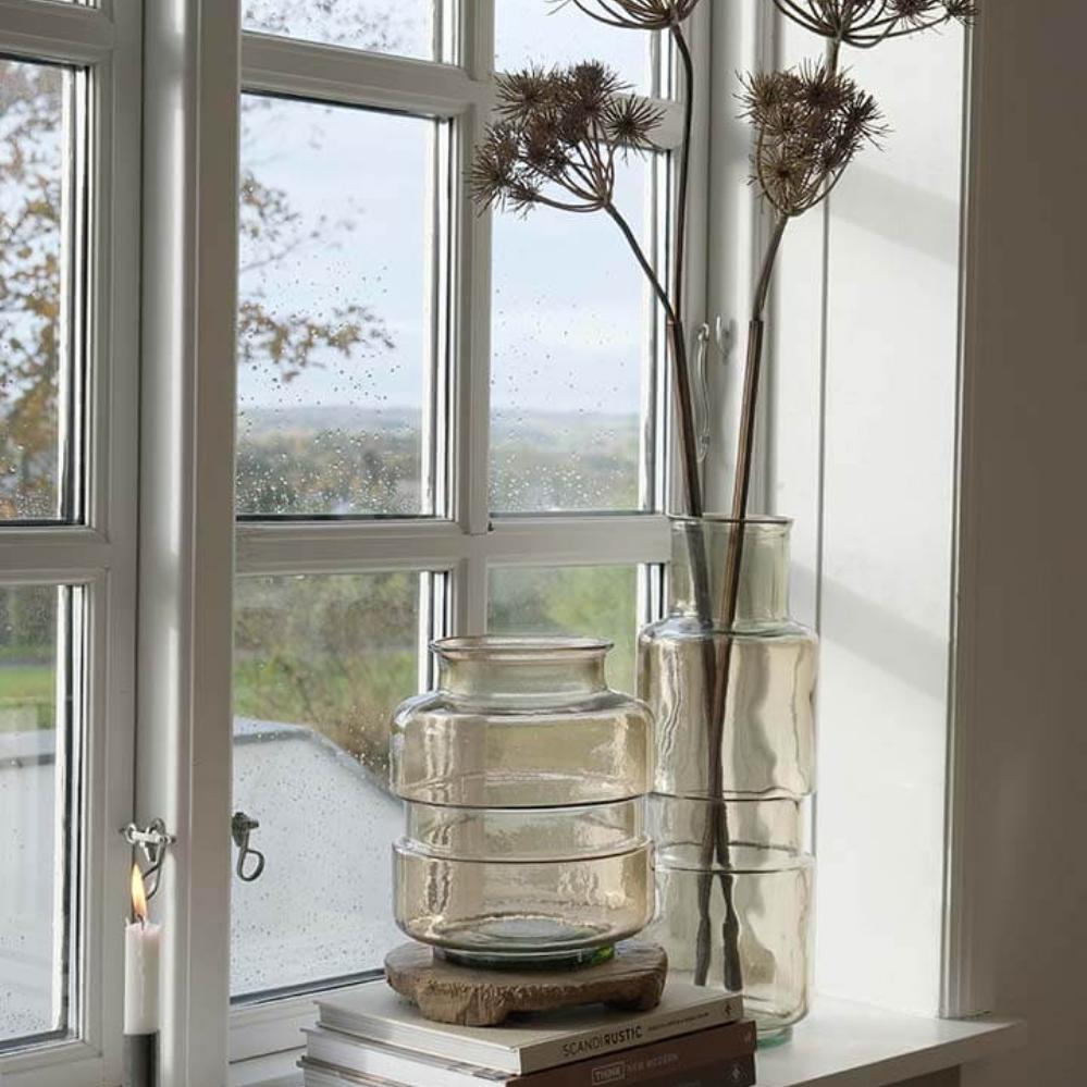 Denne stilrene smukke glasvase er en skulptur i sig selv og passer perfekt ind i den moderne indretning. Glasvasen er smuk både med blomster, rustikke grene eller den kan stilles på bordet med andre dekorative ting i forskellige størrelser, former og farver i et stilleben og dermed skabe et personligt og levende look. Vasen er lavet af genanvendt glas, og der kan derfor forekomme små bobler og mindre ujævnheder i glasset.
