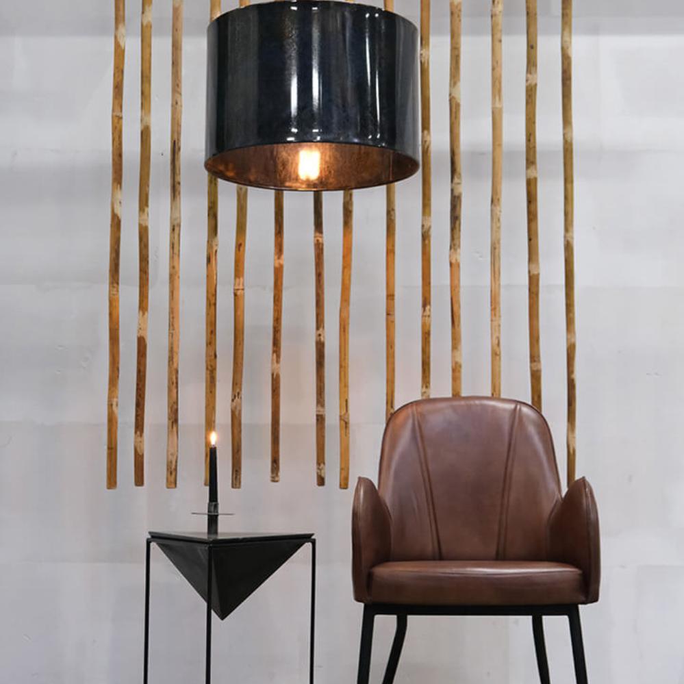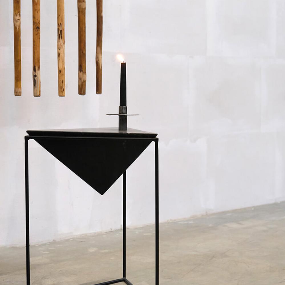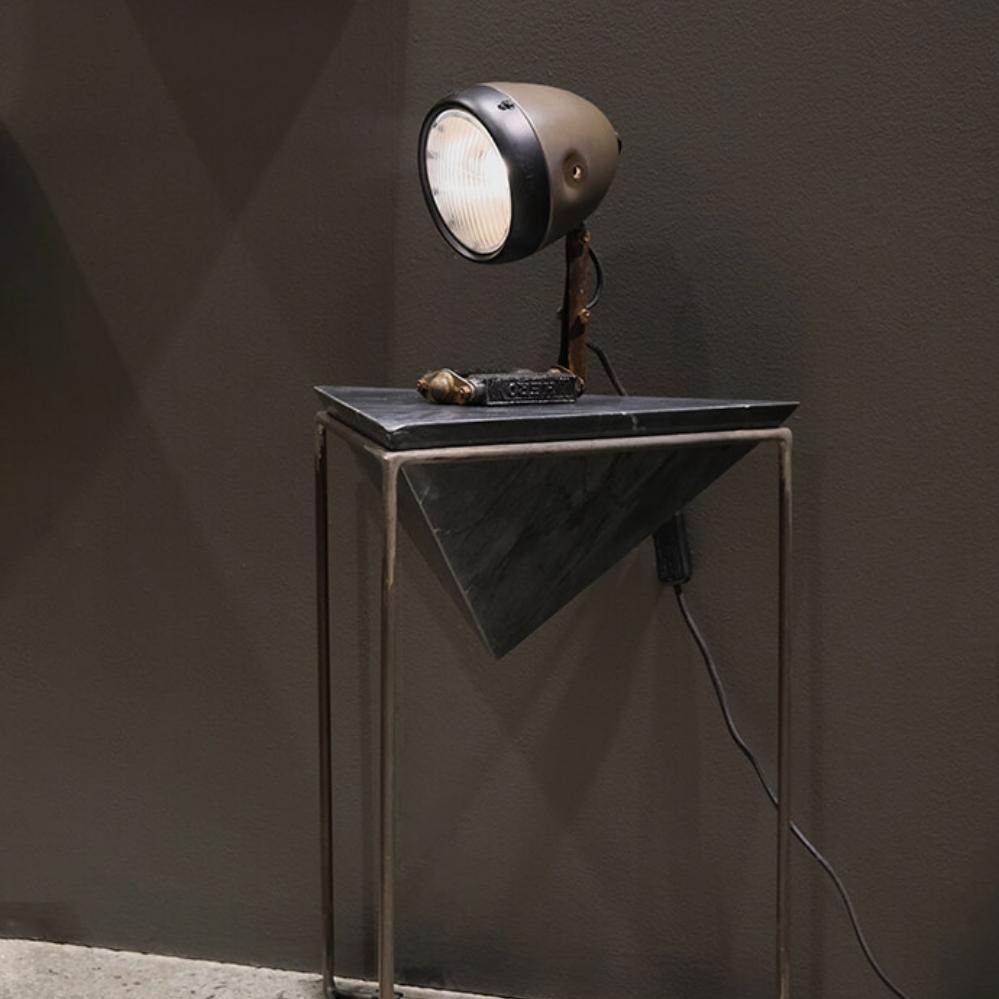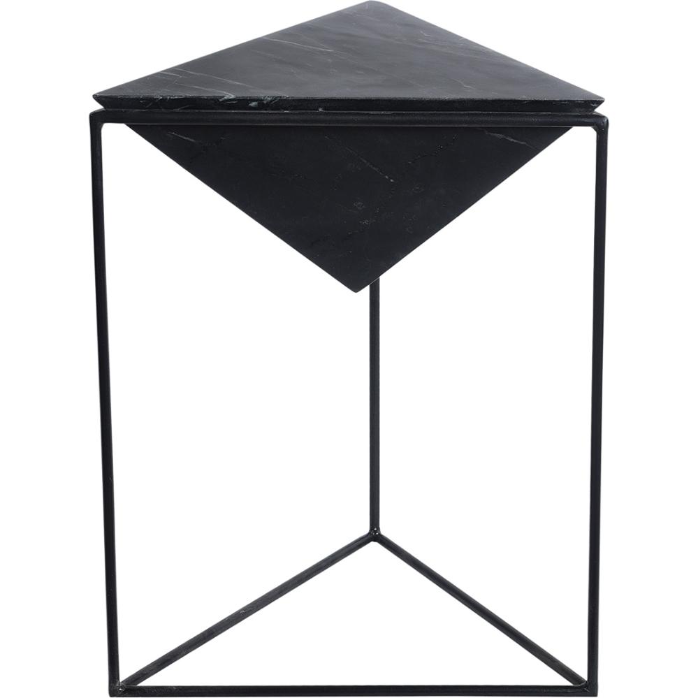 Slankt sidebord med et smart og anderledes pyramideformet udseende. Stellet er i jern og pladen er lavet af sort/hvid marmor. Et super anvendeligt og praktisk sidebord, der vil skabe blikfang i enhver indretning.