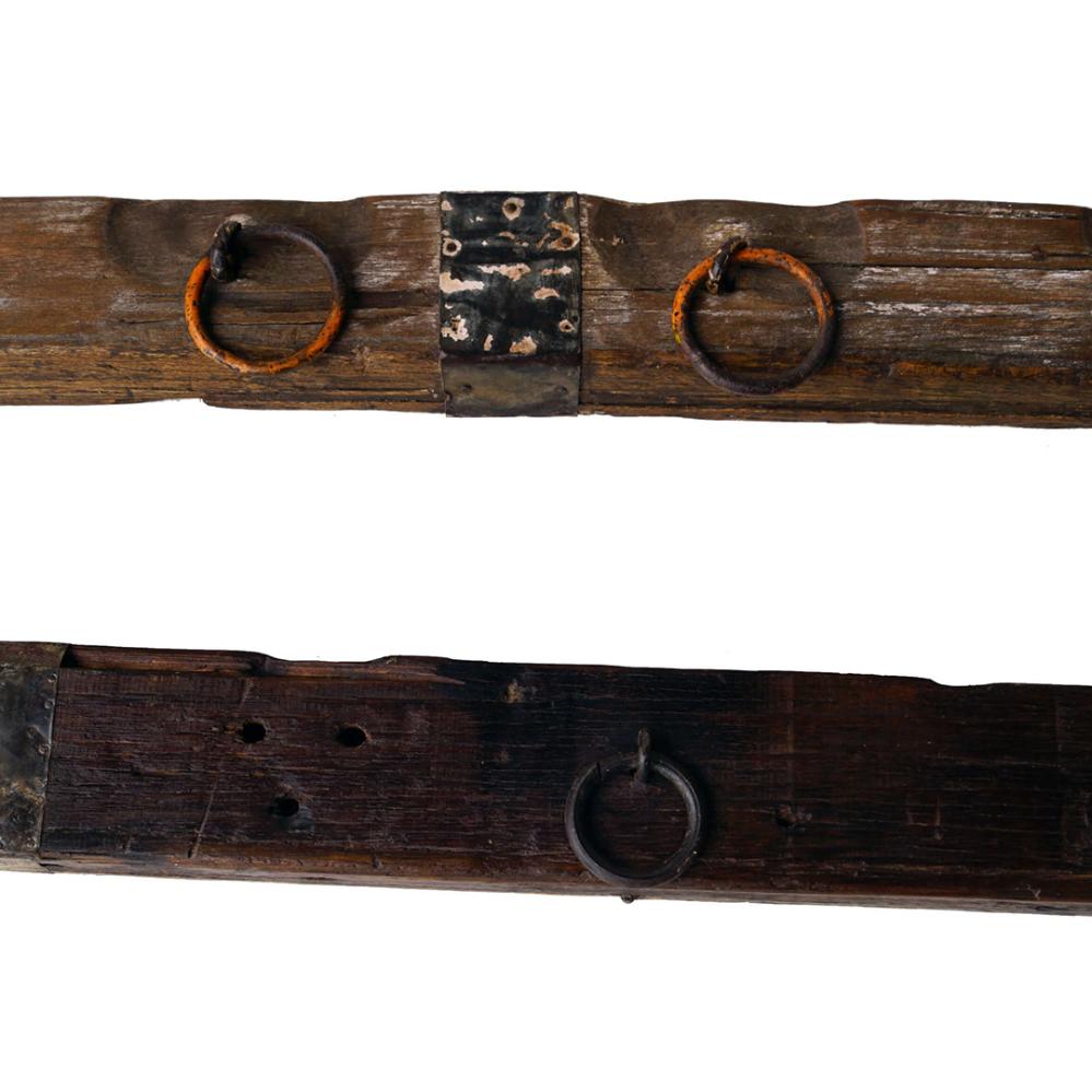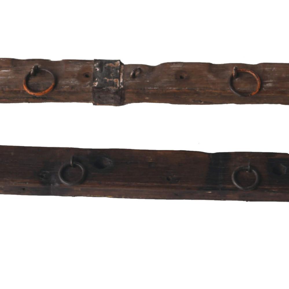 Unik lang kraftig træbjælke med påmonteret jernringe. Hæng træbjælken i loftet og du kan hænge lamper ned fra bjælken. Det giver en ekstra rustik demension til din indretning. Du kan også hænge træbjælken på væggen og hænge alle former for dekoration i jernringene. Til dig der er kreativ og ønsker at tilføre din bolig eller business en sjov og anderledes rå detalje.