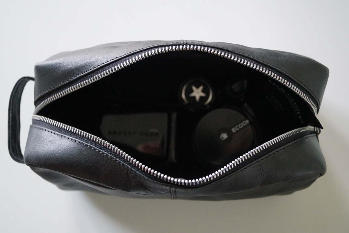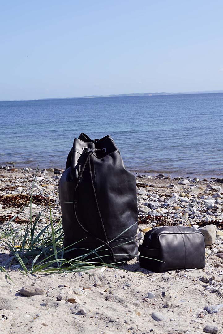 Toilettaske med et klassisk og stilrent design, som er populært hos både mænd og kvinder. Toilettasken har et stort rum lukket med lynlås en mindre lomme og strop i enden. Tasken er i sort blødt bøffellæder, der kun bliver mere lækker og blød med årene.