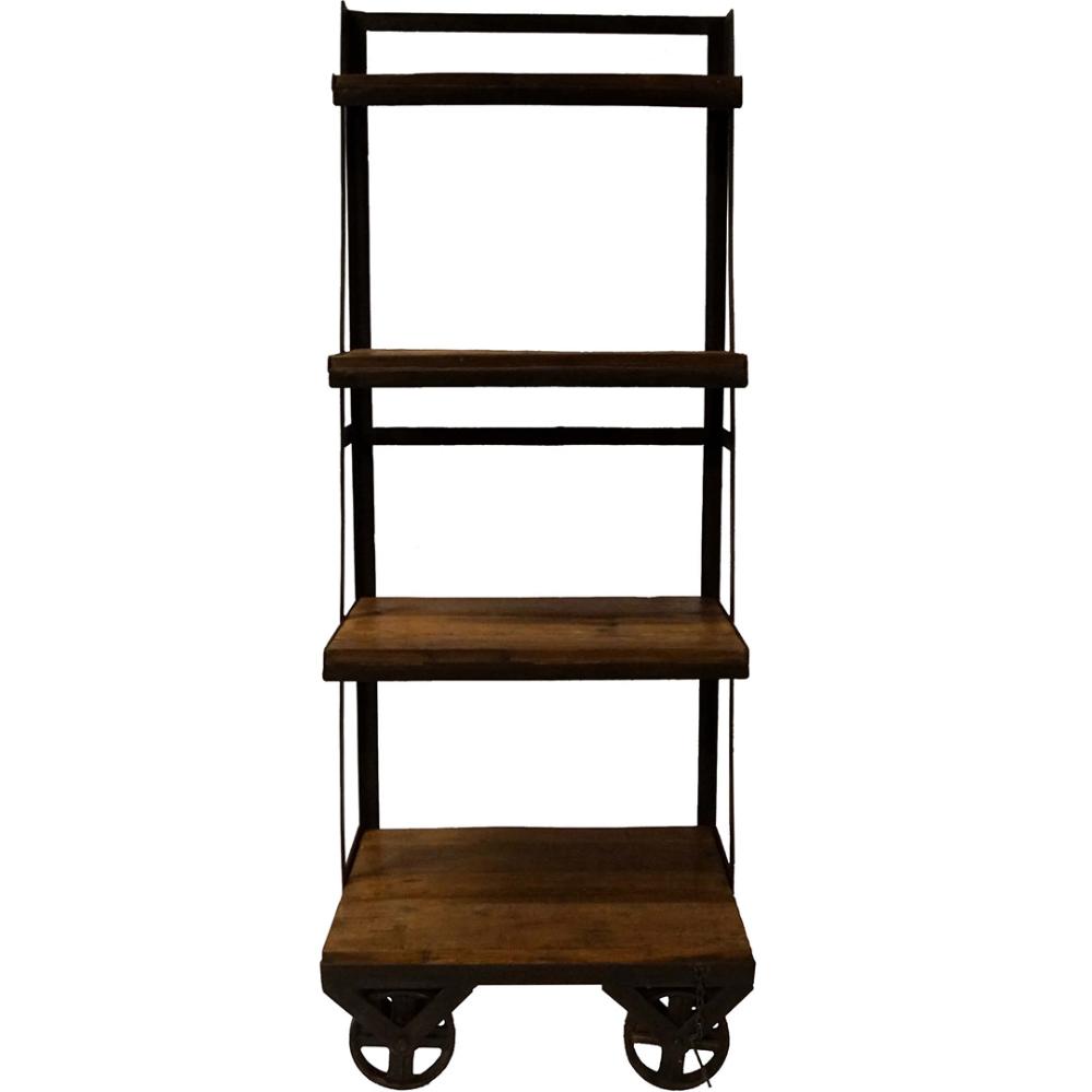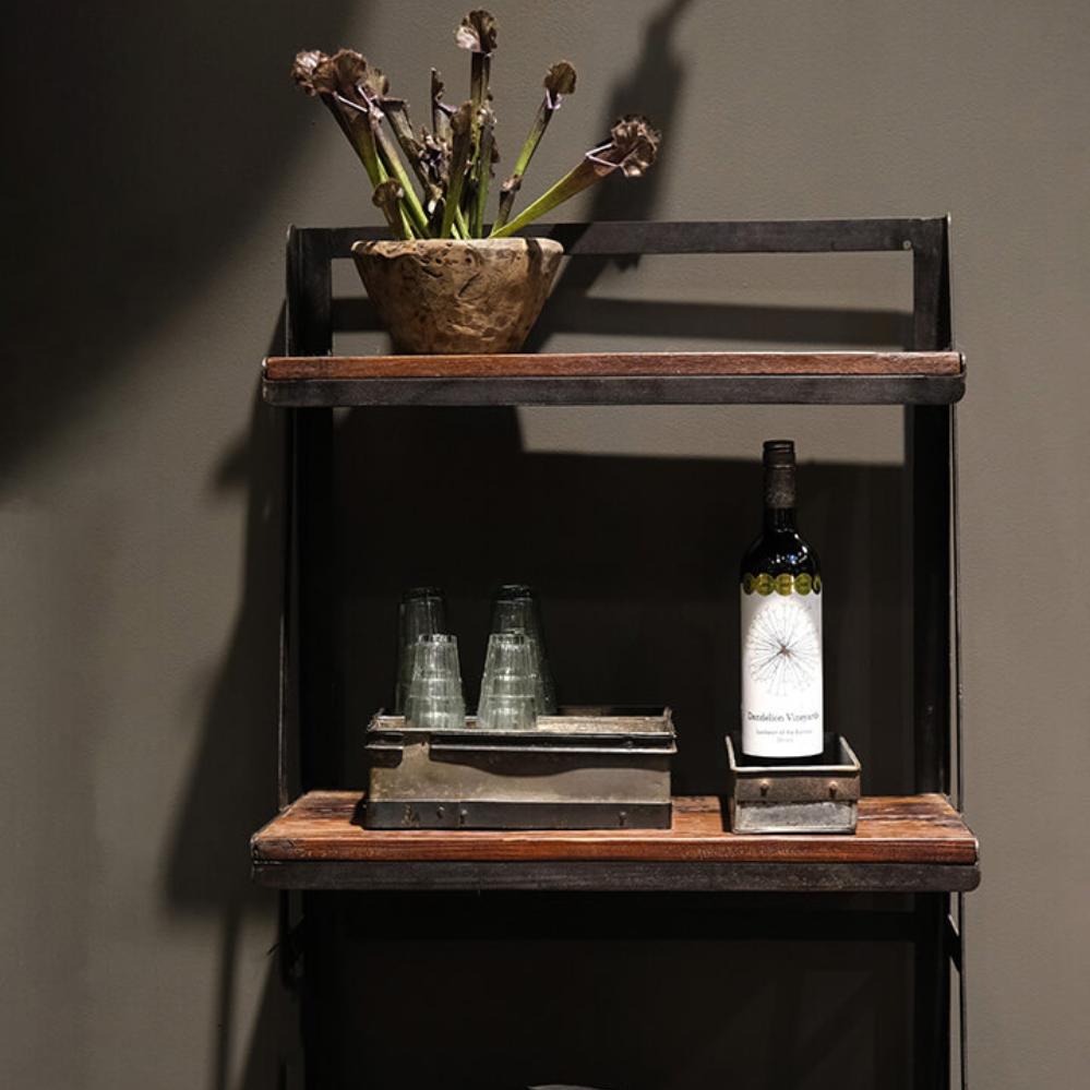 Smuk, charmerende reol på 4 grove hjul med 4 hylder. Reolen har et rustikt jernstel med 4 træhylder der bliver smallere og smallere mod toppen. Reolen er både praktisk og dekorativ og vil være helt oplagt i din blomster- eller interiørbutik til udstilling af produkter. I hjemmet kan du bruge den hvor som helst du har brug for en rustik reol til dine nips, dit porcelæn eller tøj. Hyldedybden er nedefra og op: 50 cm, 40 cm, 30 cm, 20 cm. Afstanden mellem hylderne er 39 cm.