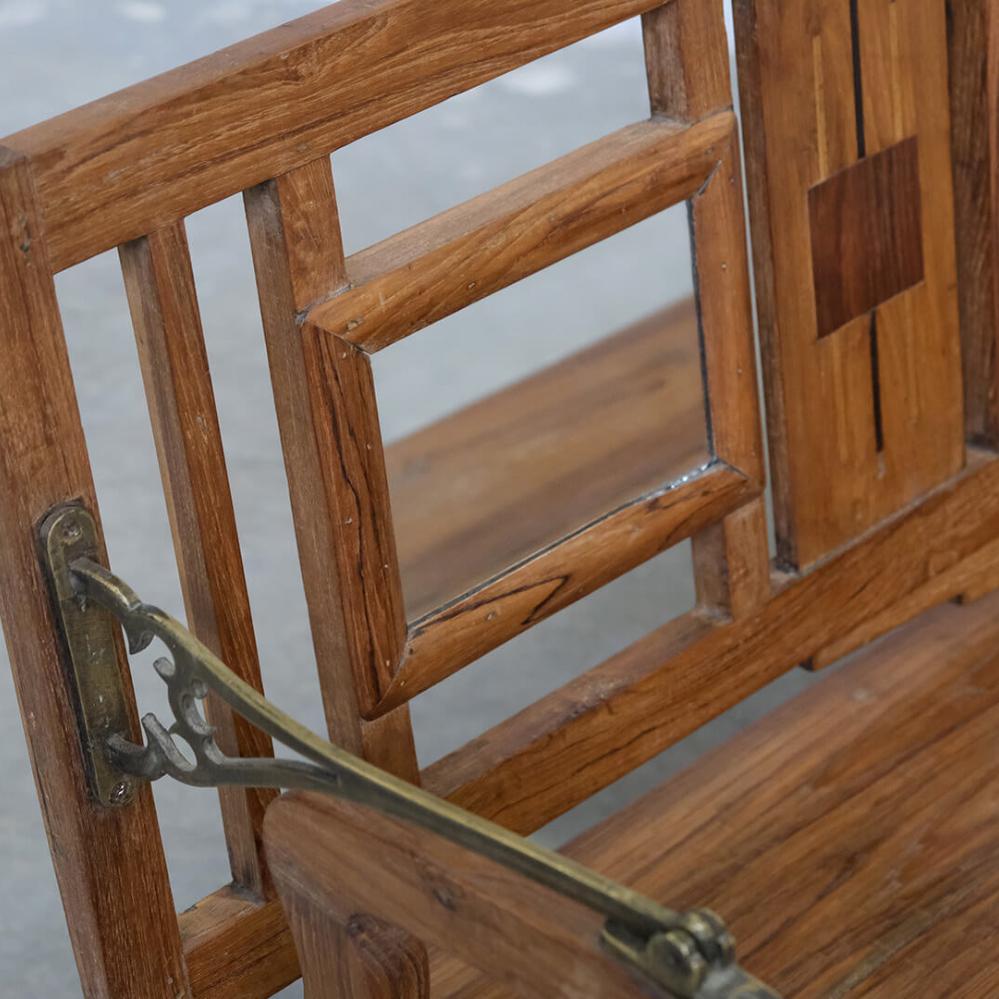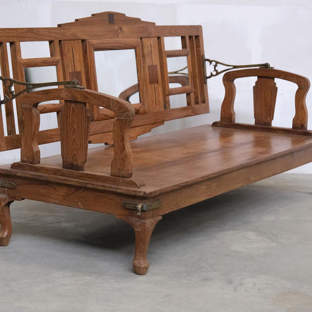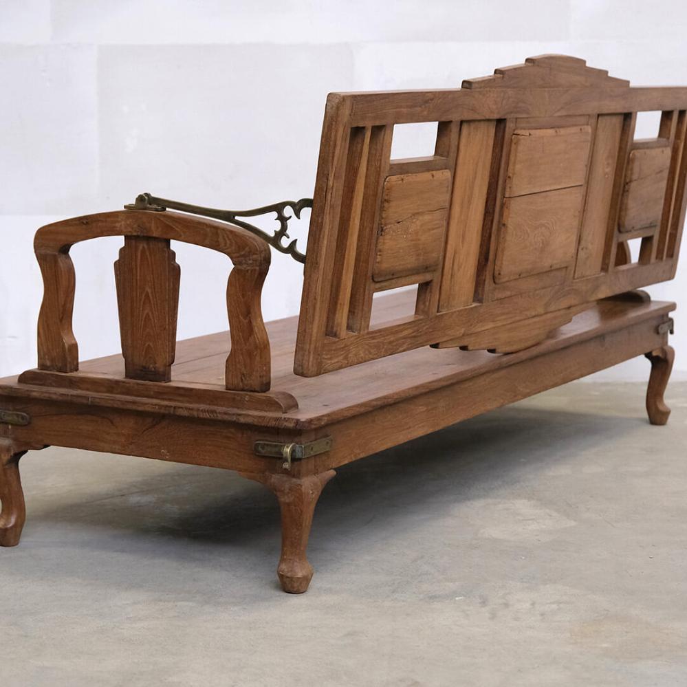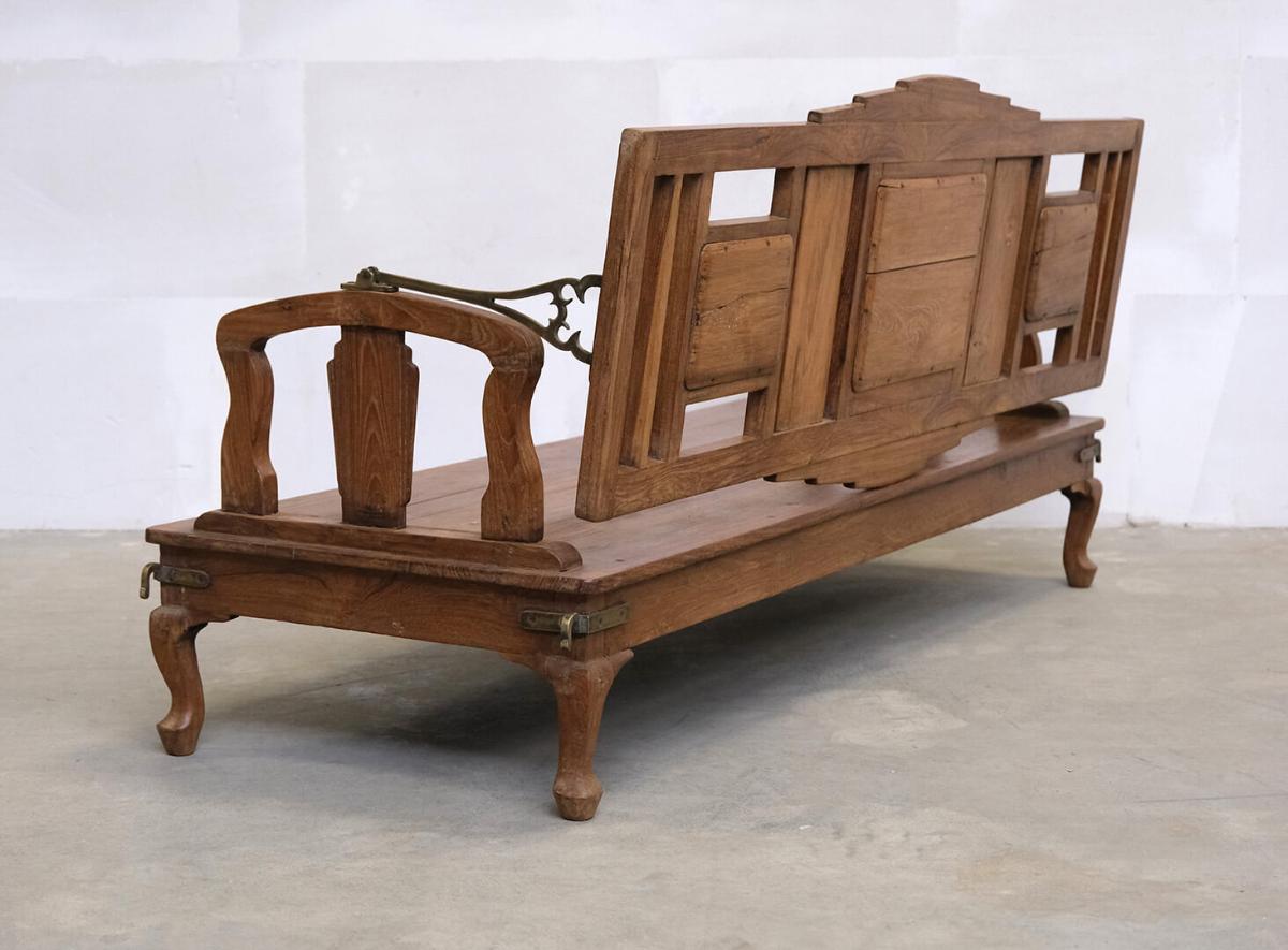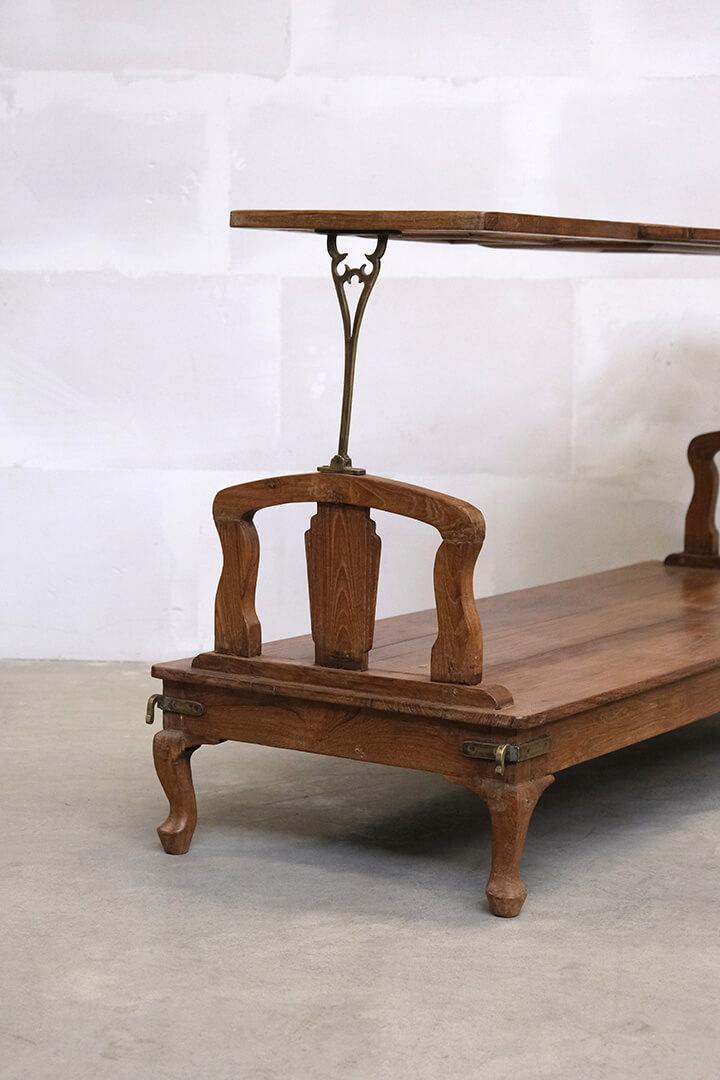 Skøn gammel bænk med mange flotte og sjove detaljer. Den sjoveste detaljer er at du kan svinge ryglænet op over bænken og dermed bruge den fra begge sider. Desuden har den 3 spejle i ryglænet og fint svungne ben.