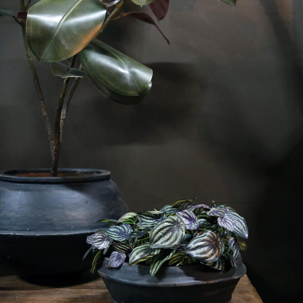Rustik mørk lerkrukke med en skøn patina. Benedict lerkrukken kan bruges som dekoration i sig selv, eller brug den til blomster og planter. Kig også efter den matchende Benedict krukke i størrelse L. De vil udgøre et flot par i din vindueskarm eller på din skænk. Krukken er dog ikke vandtæt, så vi anbefaler en plastikindsats, hvis du bruger den til planter.