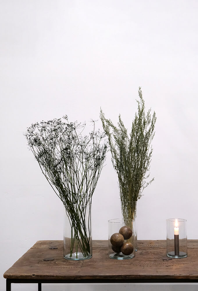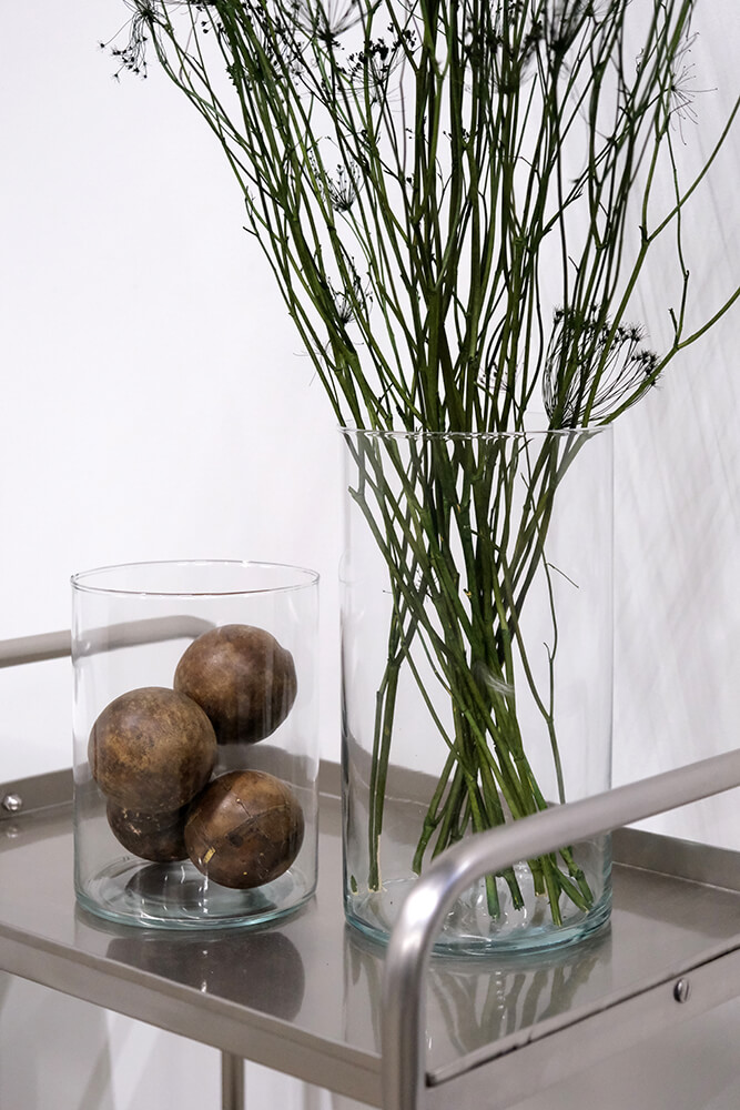 Denne cylinderglasvase er et alsidigt designobjekt, der gør det nemt at skabe stemning og personlighed i dit hjem. Den slanke form giver vasen et let og elegant udtryk, mens det tykke glas sikrer stabilitet og holdbarhed. Med sin enkle og neutrale stil fungerer vasen som et smukt lærred for dine egne kreative idéer, hvad enten du bruger den som vase, lyslygte eller dekorativ beholder. Vasen er især velegnet til bloklys og stearinlys, hvor den transparente glascylinder beskytter flammen og samtidig skaber et hyggeligt og roligt lys. Den er også perfekt til lange grene, høje blomster, grønne planter eller dekorative naturmaterialer, som tilfører rummet varme og karakter. Da vasen fås i flere størrelser, kan du let matche den til forskellige rum og opstillinger fra vindueskarmen og sofabordet til spisebordet eller terrassen. Kombinér flere størrelser for et stemningsfuldt og dynamisk udtryk, der løfter din indretning på en enkel og stilfuld måde. Kan desuden bruges som indsats i krukker, der ikke er vandtætte.