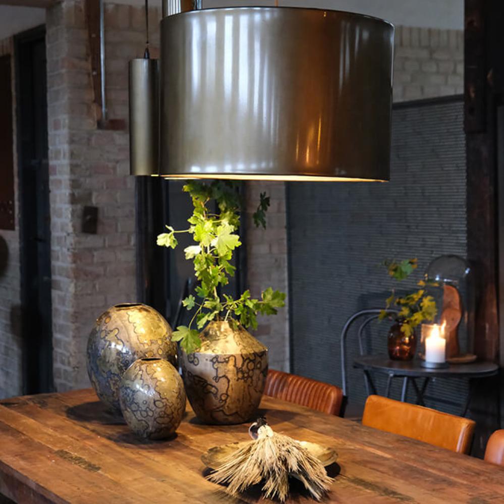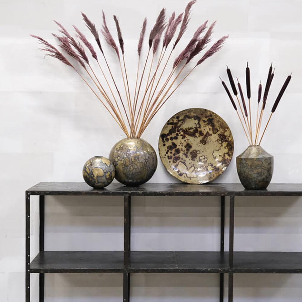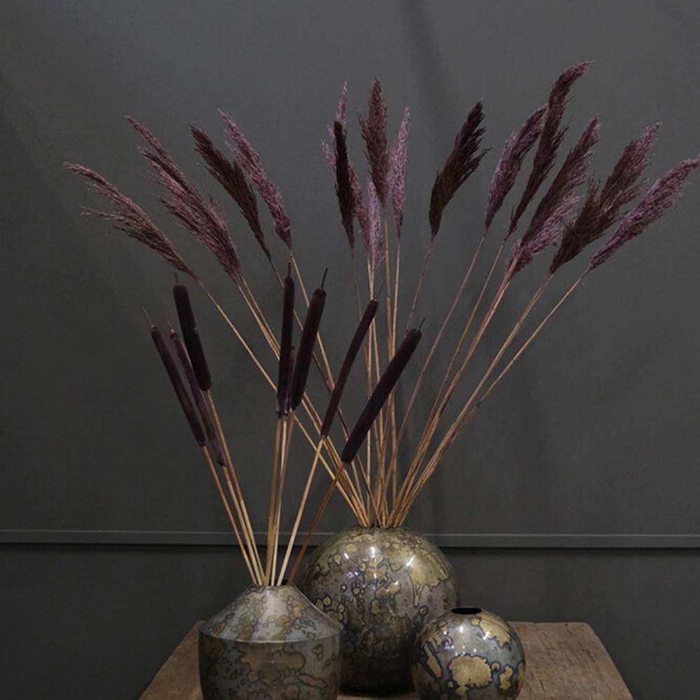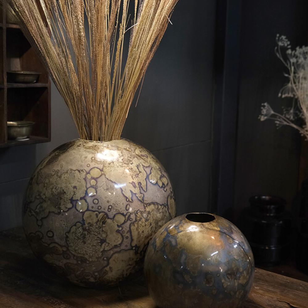 BOSTON - rund vase fremstillet i metal. Vasen har en markant farvenuance, hvilket der giver vasen en virkelig smuk effekt samt eksklusivt look. OBS. vasen kan IKKE holde vand kun til dekoration.