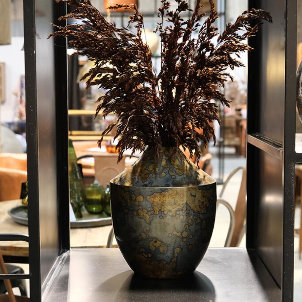 BOSTON - vase fremstillet i metal. Vasen har en markant farvenuance, hvilket der giver vasen en virkelig smuk effekt samt eksklusivt look. OBS. vasen kan IKKE holde vand kun til dekoration.
