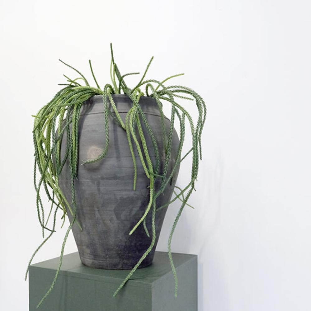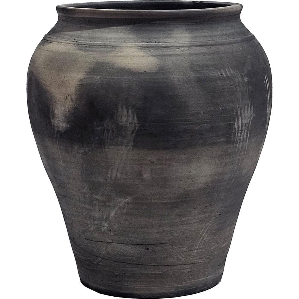 Denne lerkrukke er til dig, der sætter pris på naturlige materialer og et ærligt udtryk. Krukken er 42 cm høj med en åbning på 19 cm, og den har den enkle, bløde silhuet, der gør sig smukt både alene og i selskab med andre krukker. Den mørke overflade er levende og varieret, ikke to er helt ens, og det er netop en del af charmen. Brug lerkrukken som gulvvase til tørrede grene eller lange blomster, eller lad den stå helt enkelt som et dekorativt objekt i entréen, stuen, showroomet eller restauranten. Uanset hvor du placerer den, bringer den varme, ro og et strejf af håndlavet autenticitet.
