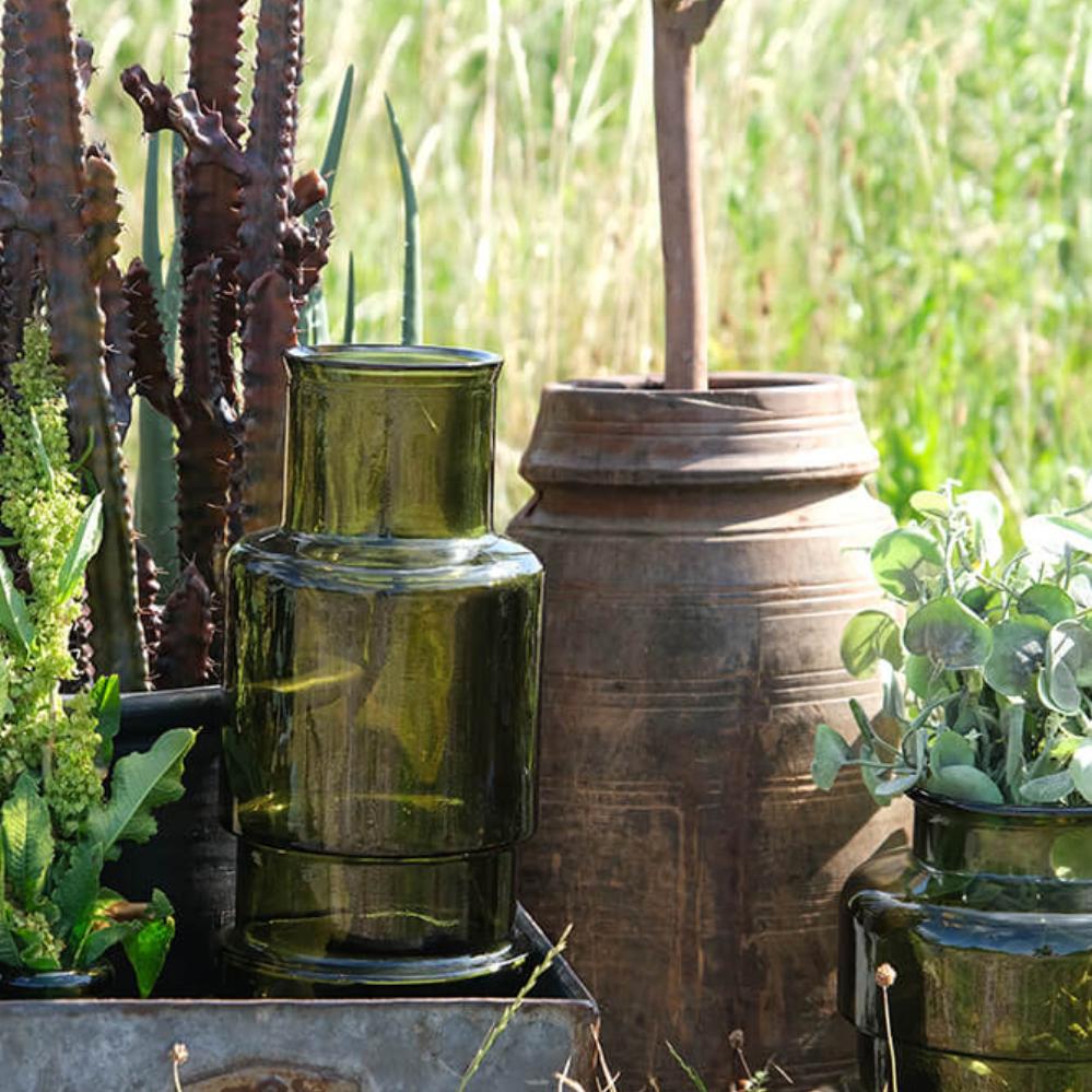En smuk og tidløs vase fremstillet i genbrugsglas, så små bobler og ujævnheder kan forekomme. Den enkle form og de bløde linjer gør vasen perfekt til både friske og tørrede blomster eller som gulvvase med høje grene. Kan desuden kombineres med andre dekorative ting i forskellige størrelser, former. Vasen fås i flere farver, så du kan finde den tone, der passer perfekt til din indretning.