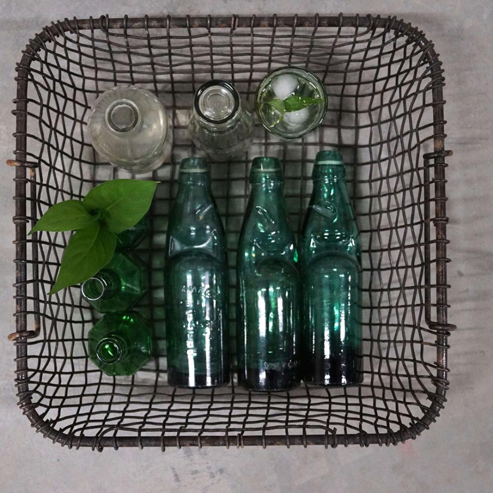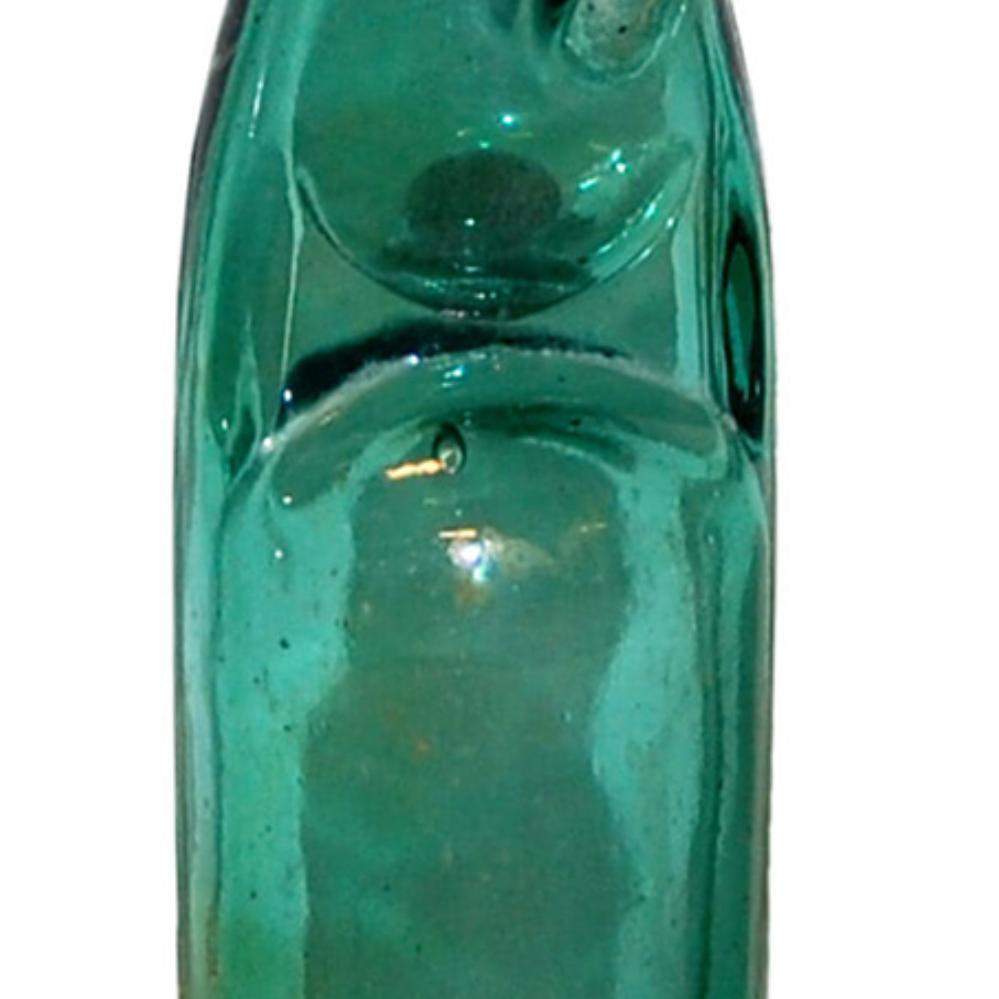 Her har du en sjov flaske i kraftig grøn glas med en unik historie. Flasken er tom, men normalvis er den fyldt med indisk sodavand. Flasken er af typen "Codd Bottles" opkaldt efter opfinderen Hiram Codd 1838-1887. Det var ham, der i 1873 fik patent på den lille kugle der ligger i flasken. Ideen er, at kulsyren og sodavandet presser kuglen op mod en gummiring, således at flasken er helt lukket. Kuglen presses ned med fingeren for at åbne flasken og man kan drikke indholdet. Super fine og dekorative. Tilføj en enkel gren eller blomst eller arrangere dem med forskellige andre fine pynteting og skab en unik personlig stemning.