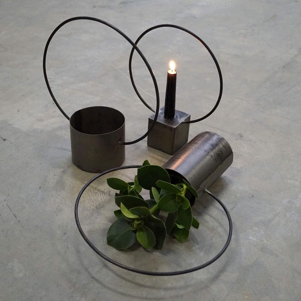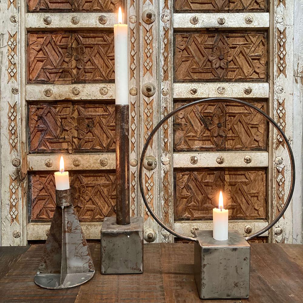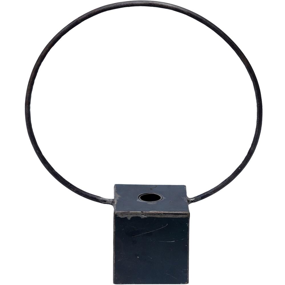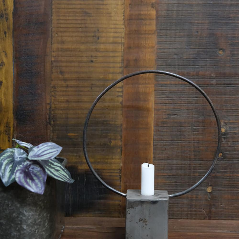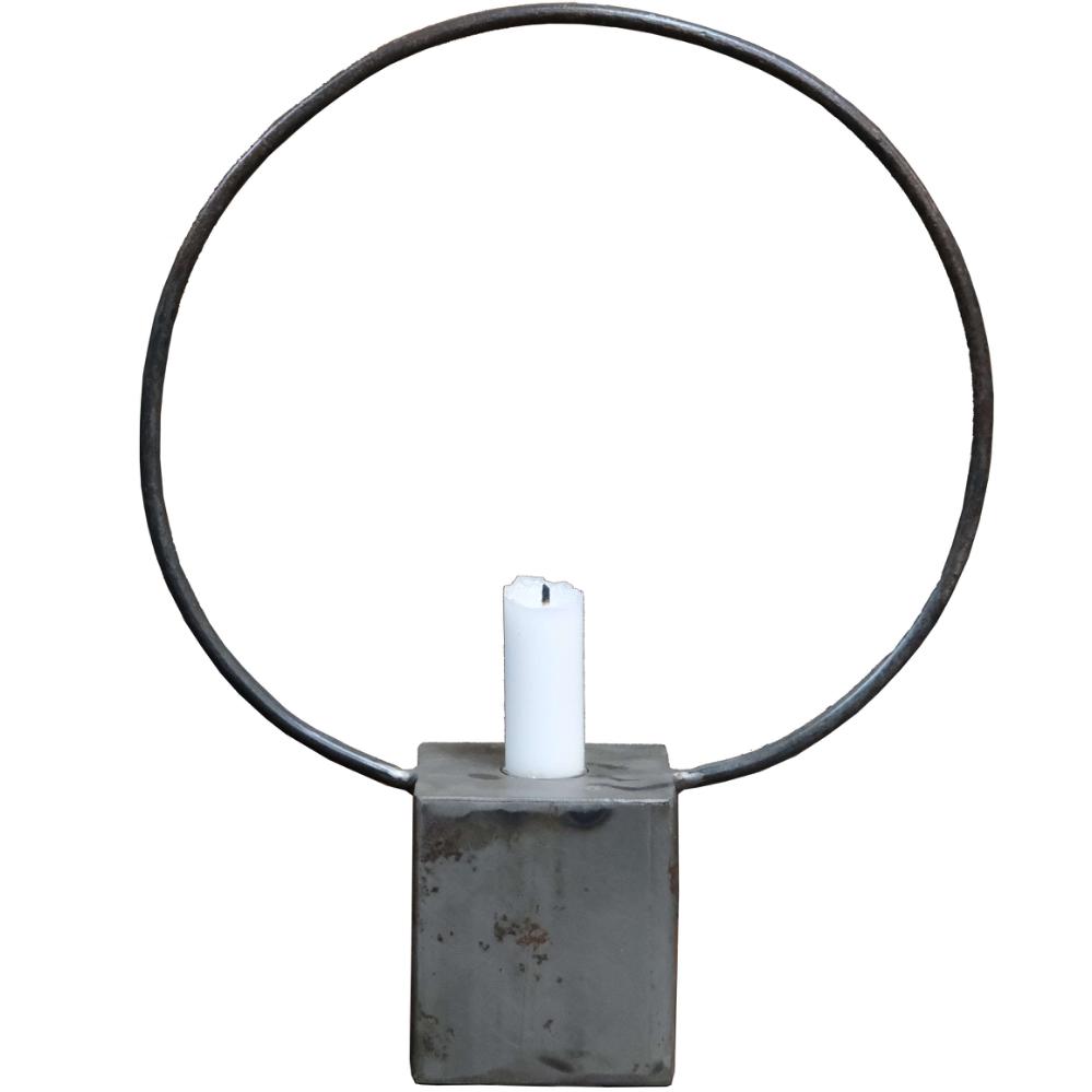 Denne cirkelformede rå lysestage er et fint valg til den industrielle moderne eller minimalistiske indretning. Lysestagen kan stilles hvor der ønskes rene linjer på borde, vindueskarme og hylder eller hæng den fra en krog i loftet.. Brug korte kronelys.