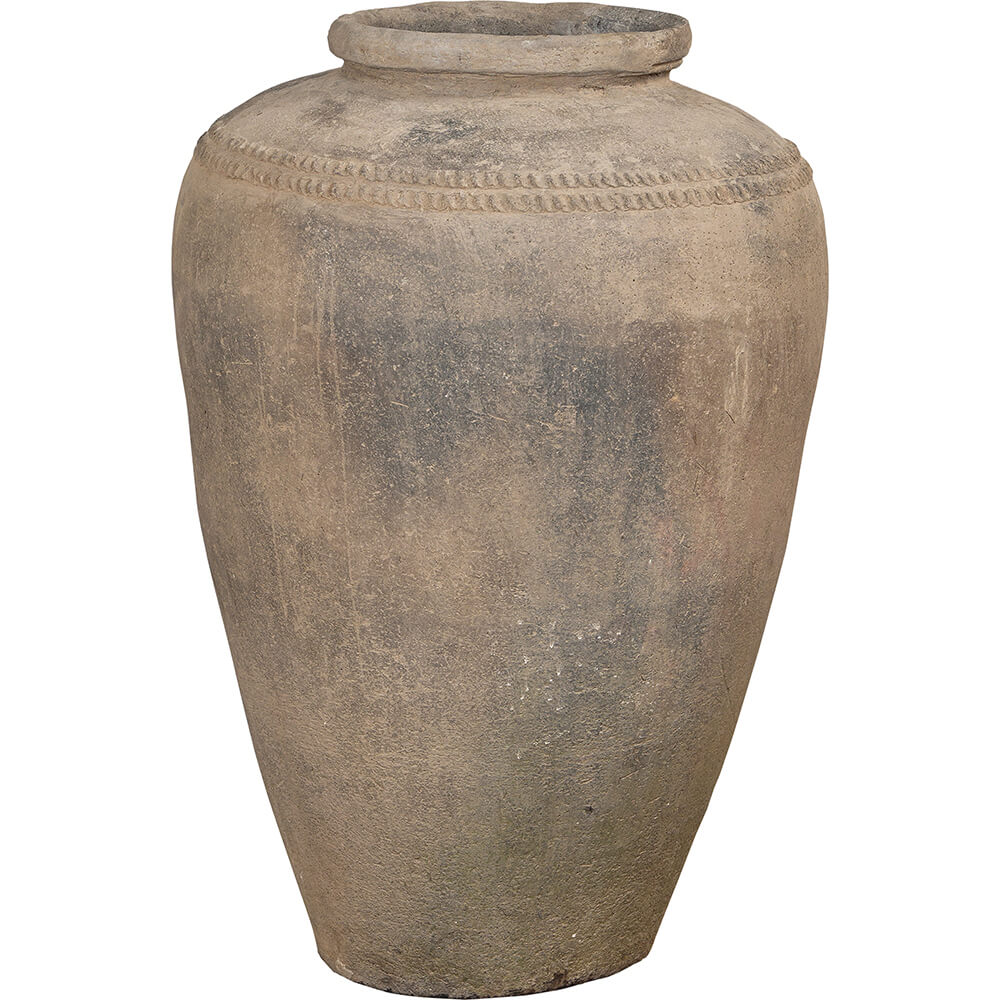Stor, gammel lerkrukke med smuk naturlig patina. Krukken har et autentisk, håndlavet udtryk og varierer let i form og farve, hvilket gør hver enkelt unik. Med en højde på 85–90 cm er den perfekt som dekoration i sig selv eller til store grene og tørrede blomster. NB! Krukken er ikke vandtæt, så vi anbefaler, at du benytter en plastikindsats, hvis den bruges til planter.