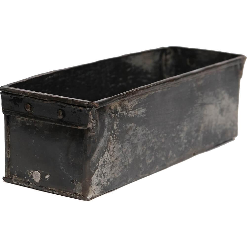 Rustik gammel brødform i metal med skøn patina. De gamle brødforme er superfine til skrivegrej på kontoret, krydderier i køkkenet, til grønne planter eller til opbevaring af lys, bestik eller andet nips. Formene har været brugt i indiske hjem til at bage brød i og er derfor alle forskellige i både form og patinering. Bakkerne er blevet rengjort og har fået en overfladebehandling med klar lak. Bakken er ikke vandtæt, så der skal bruges en indsats eller en underskål til bakken, hvis du bruger den til planter.