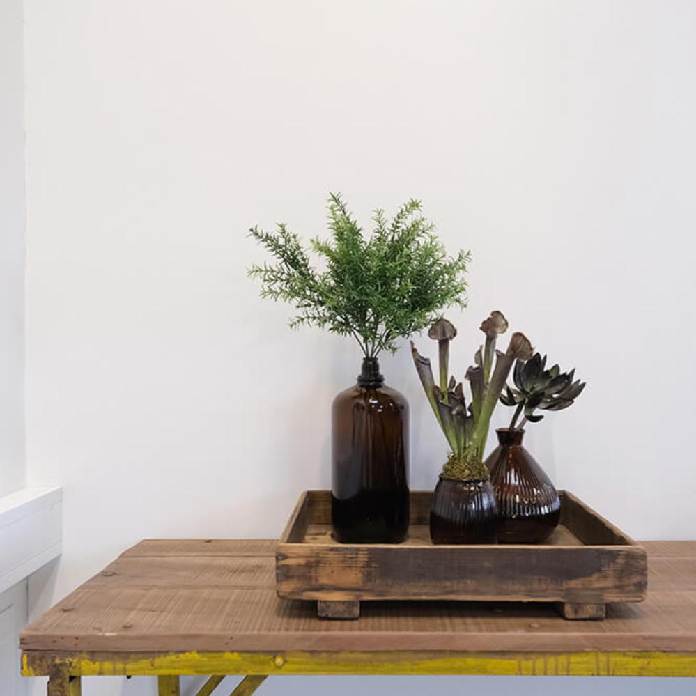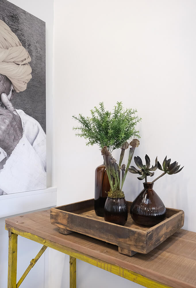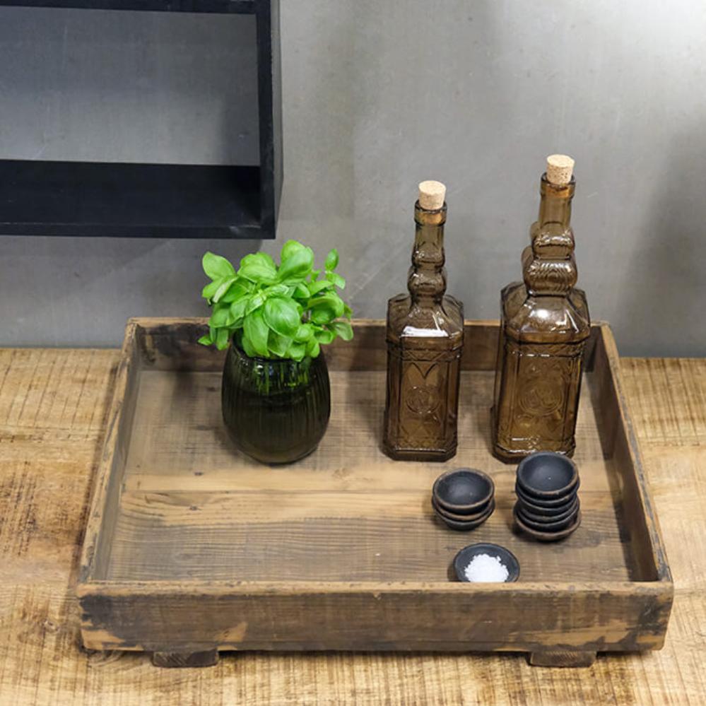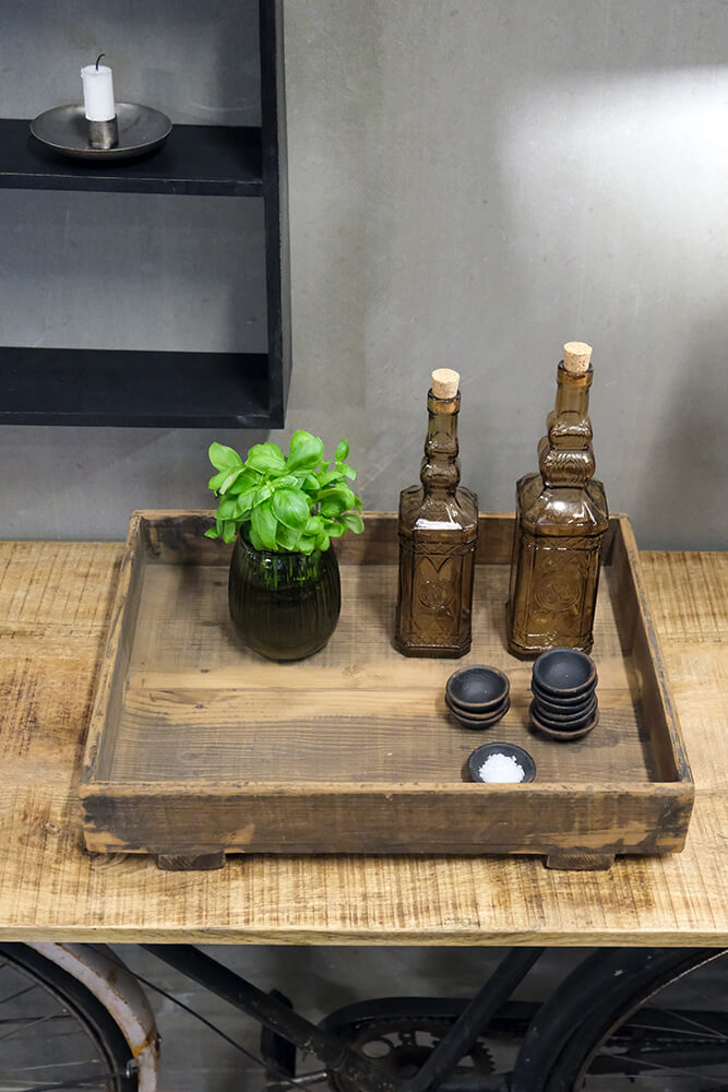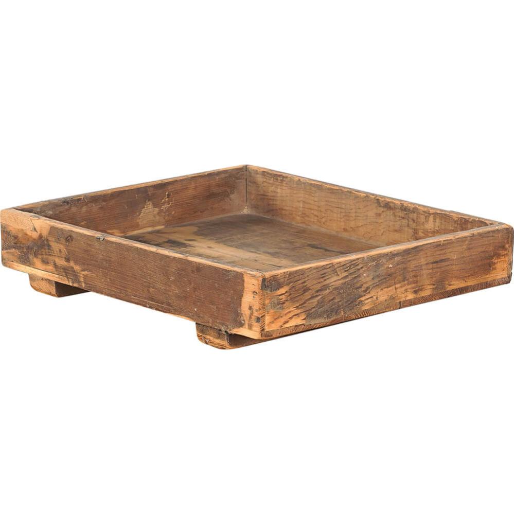 Denne gamle træbakke emmer af historie og håndværk. Med sit slidte udtryk, grove snit og smukke patina er den ikke bare en praktisk opbevaringsløsning, den er et lille stykke vintage magi, hvor hver bakke har sin egen personlighed. Brug den til servering, som base for stilleben eller til at samle dine favoritnips på et bord eller i vindueskarmen. Uanset placering tilføjer den varme og karakter til rummet, og lidt af den der "fund fra en gammel markedsplads"-stemning, vi ikke kan få nok af. Et must-have for elskere af det rustikke og det uperfekte.