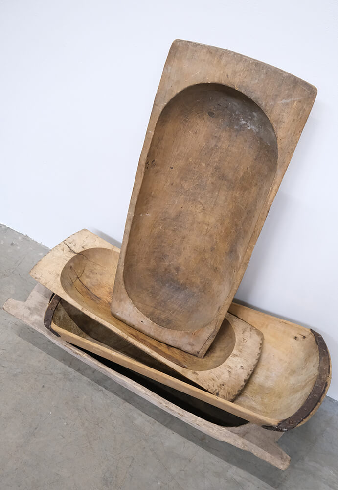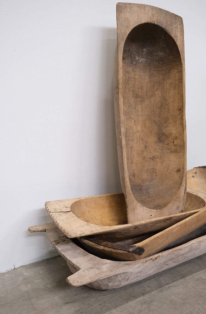 Disse smukke gamle aflange sulefade kommer fra Østtyskland og blev tidligere brugt til at bage brød i. Alternativt brugte slagteren også disse fade til at transportere kød i. Brug de gamle sulefade i din indretning til blomster og bloklys, garn eller magasiner. Du skal være opmærksom på, at alle fadene er unikke og der vil være forskel på nuance, størrelse og finish.