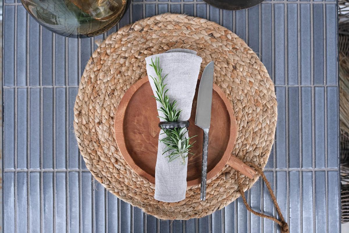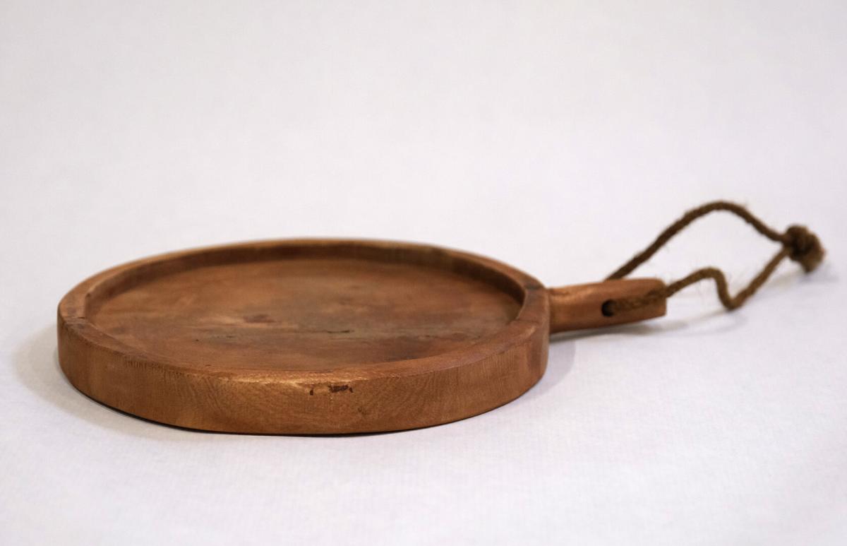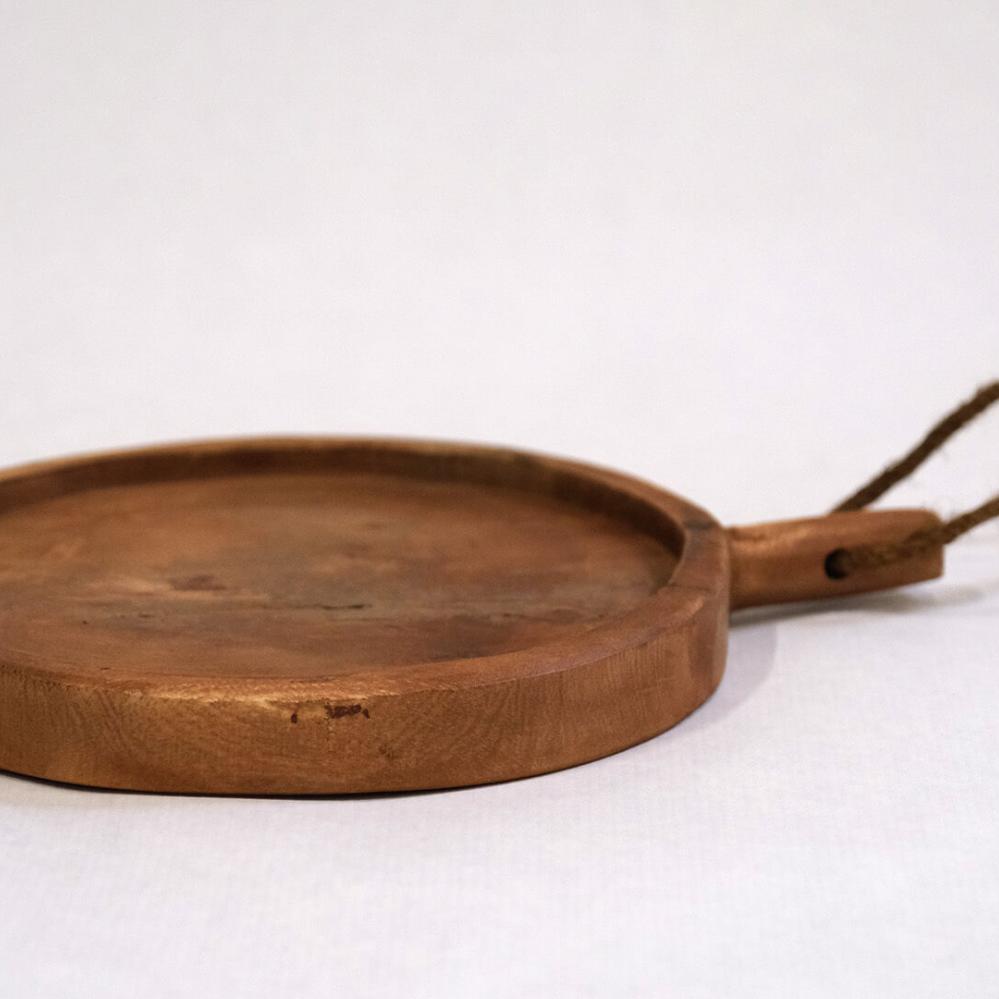 Rundt serveringsbræt i træ. Giv dine gæster en inspirerende madoplevelse med en rustik og anderledes anretning. Dette serveringsbræt kan løfte præsentationen af f.eks. en god tapas, sushi eller bagværk. Brug vand og sæbe til rengøringen, og forlæng holdbarheden ved at smøre brættet med vegetabilsk olie. Opvaskemaskine anbefales ikke.