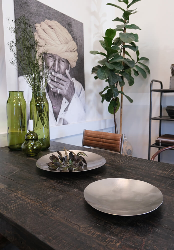 Lawrence vasen i olivengrønt genanvendt glas har en afdæmpet farve og et let skær, der gør den til en diskret, men tydelig karakter i rummet. Glasset former sig med små ujævnheder og luftbobler, der giver vasen sin rustikke sjæl. Den olivengrønne tone sender tankerne i retning af natur, ro og rå stil, uden at det bliver for pænt. Brug vasen alene på et plankebord, som centerpiece med grene eller tørrede blomster, eller stil flere i klynger på gulvet i et butiks- eller restaurationsmiljø. Den fungerer også perfekt i en entre eller lounge, hvor den kan stå og trække blikket uden at råbe højt. En enkel, men kraftfuld tilføjelse til indretningen.