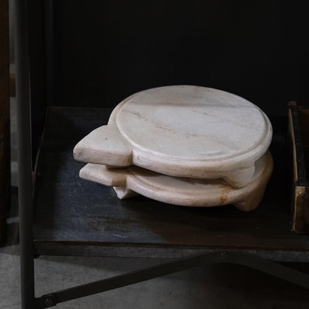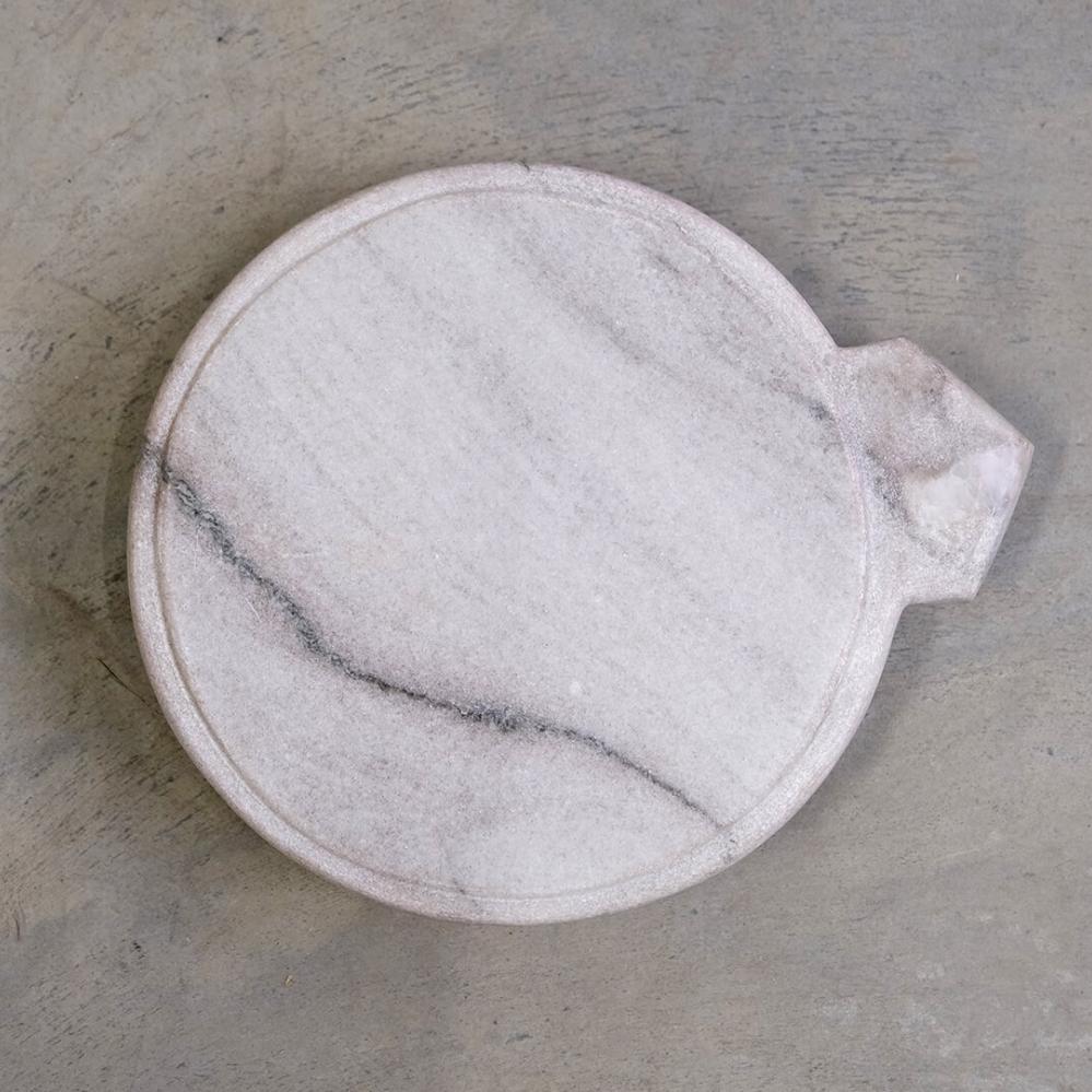 Du vil elske disse skønne runde marmor chapati platter! Platten er i hvid og grålig marmor, og da marmor er et naturmateriale, vil hvert produkt være unikt i farve og struktur. Hver marmorplatte står på fødder. Med sin anvendelige størrelse, kan platten både bruges til servering af eksempelvis oste, frugt eller tapas og give borddækningen et skønt look, men den kan også bruges til smykker, lys og andre nipsting. Platten er håndlavet og vil derfor være assorteret i størrelsen og form.