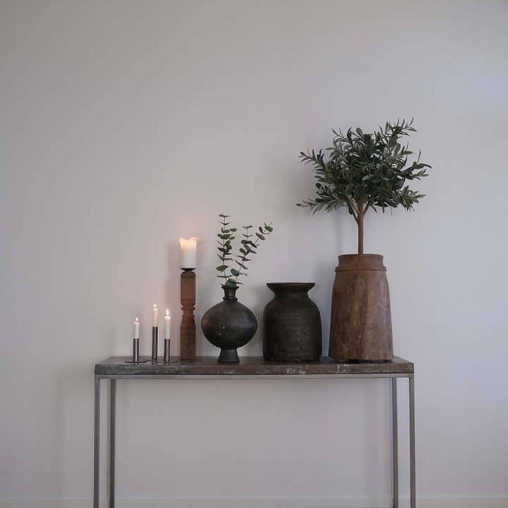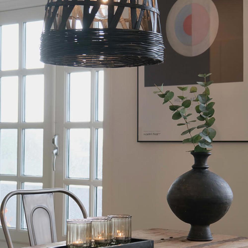 Flaskeformet lervase med et rustikt mørkt look. Brug lervasen til alt fra naturgrene, evighedsblomster eller blot som et dekorativt udtryk ved at lade den stå alene. Vasen er skøn sammen med en eller flere af vores lerkrukker med samme patina (Nr. D16274-D16277), hvor de kan skabe et rustikt eller mere feminint stilleben afhængigt af hvilke dekorative elementer du tilføjer.