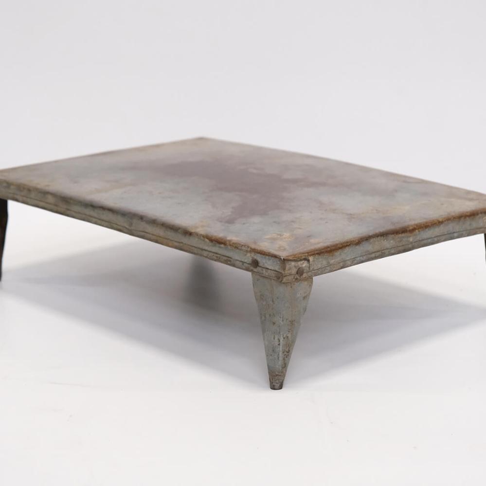 Metalbakke med rå patina og små ben. Elsker du også genbrug og ting med en historie? Med denne metalbakke får du begge dele. Bakkens smukke patina skyldes, at den som spisebord har fungeret som samlingspunktet for en indisk familie.