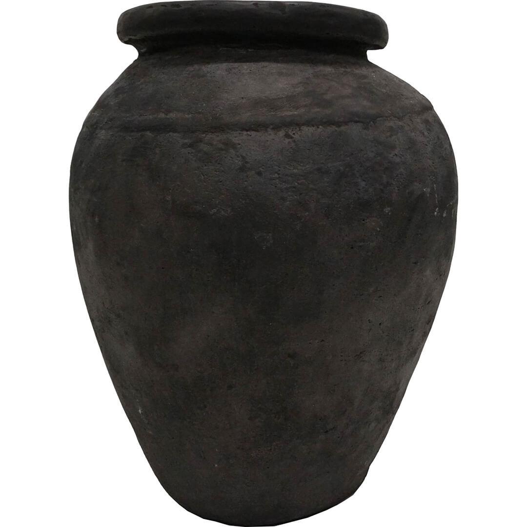 Stor rustik krukke med skøn patina. Alle krukkerne er forskellige i både størrelse og udseende. De er oprindeligt produceret i en type stenmel, og kan stå både ude og inde. Du skal dog være opmærksom på, at såfremt du ønsker at sætte en plante i den, skal du fore krukken med plastik eller sætte en glasindsats i bunden. Krukken er ikke frostsikret. Denne krukke er fantastisk dekorativ hvis du fylder den op med nogle af vores flotte bambuspinde.