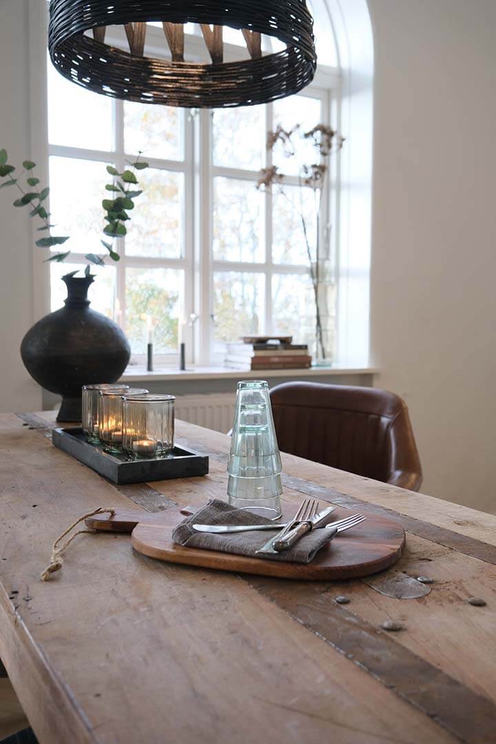 Et smukt ovalt skærebræt fremstillet i massivt træ med en varm, naturlig glød. Brættet har en praktisk hank med snor, så det nemt kan hænges op som en dekorativ detalje i køkkenet, når det ikke er i brug. Brug det til at servere tapas, ost, brød eller frugt – eller som et solidt underlag til madlavningen. Hvert bræt er unikt med sit eget spil i træets årer og nuancer, hvilket giver et autentisk og rustikt udtryk. Brug vand og sæbe til rengøringen, og forlæng holdbarheden ved at smøre brættet med vegetabilsk olie. Opvaskemaskine anbefales ikke.