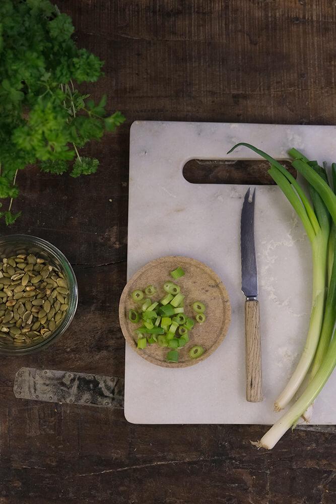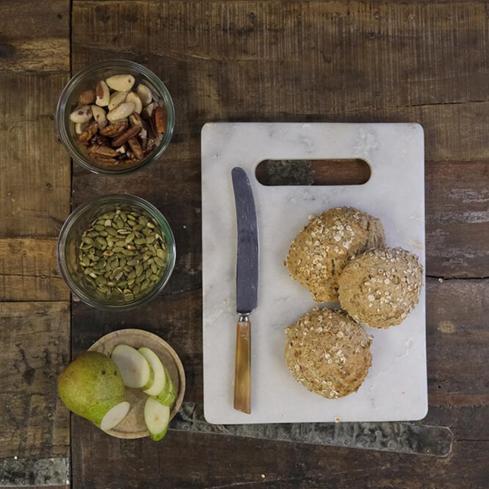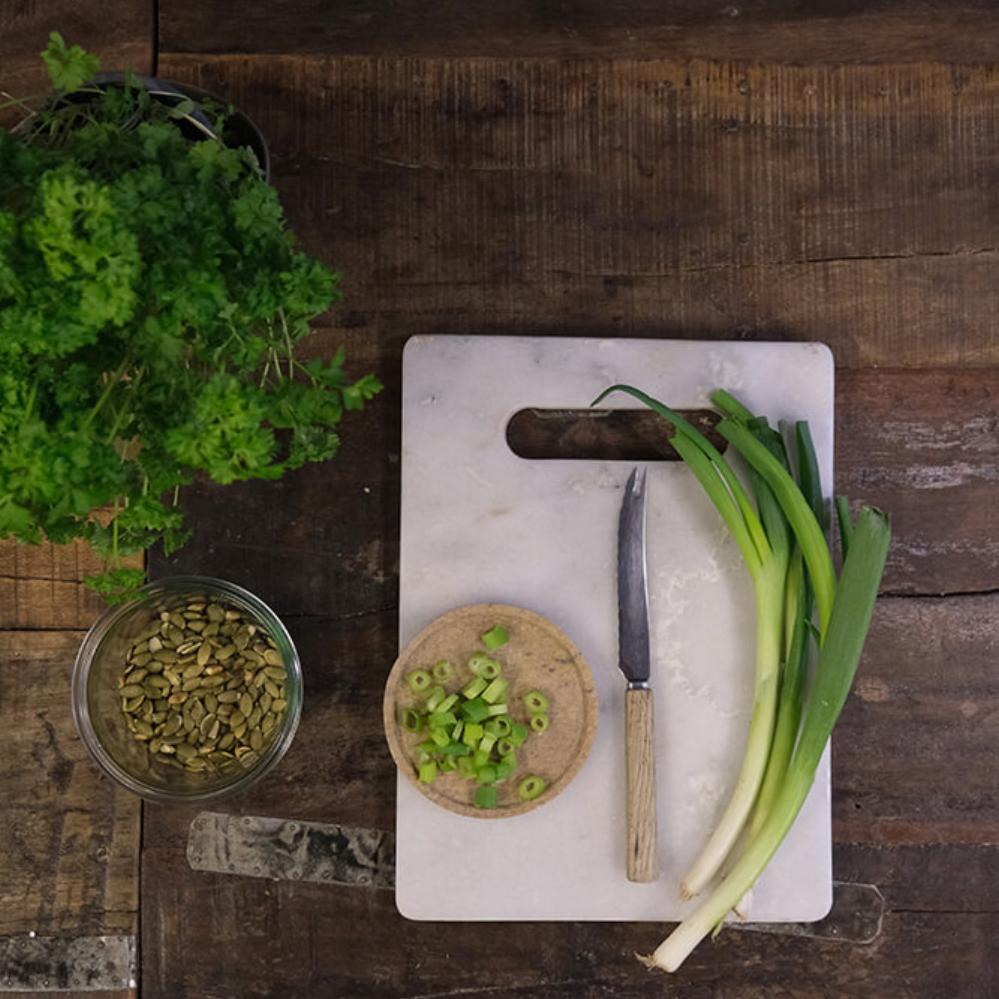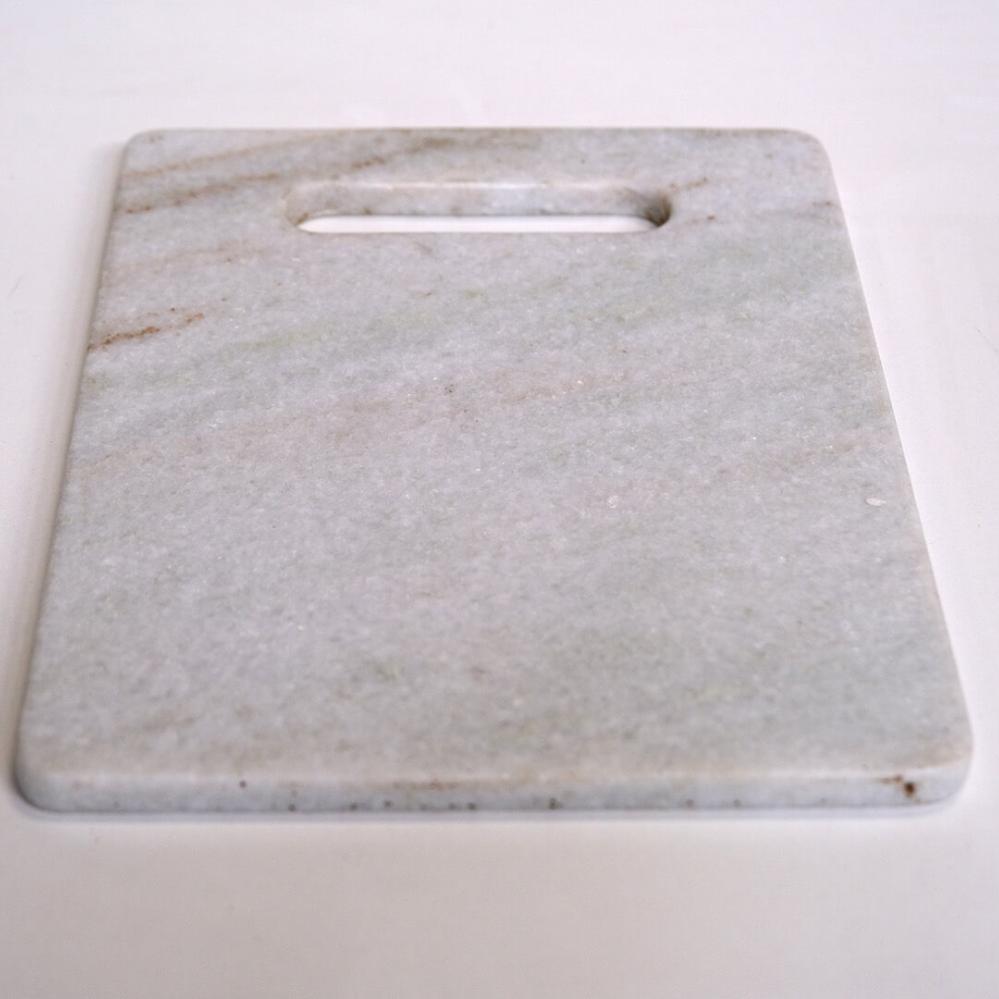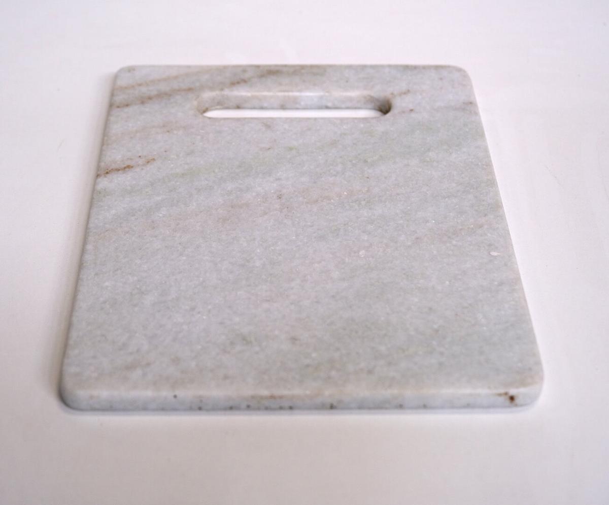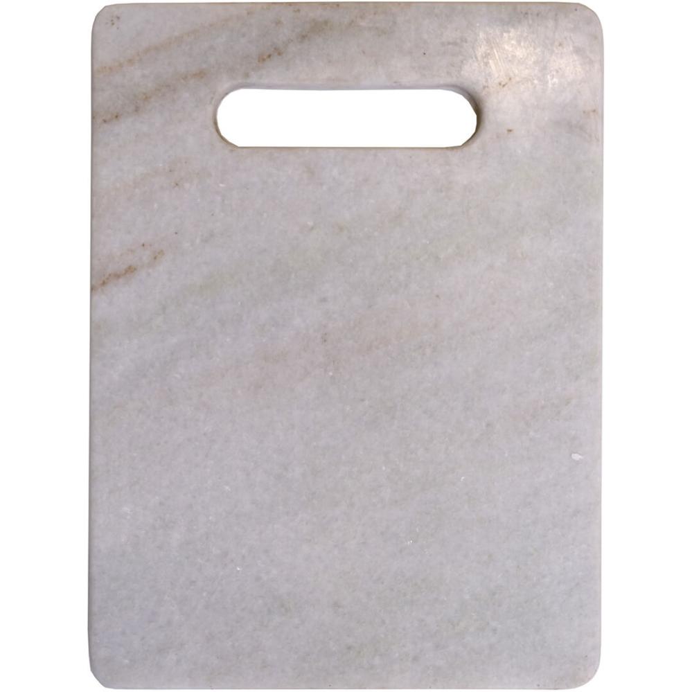 Dette skærebræt i marmor kan benyttes på begge sider og det praktiske håndtag gør det nemt at flytte brættet. Skærebrættet i lyst marmor kan sagtens stå fremme og fungere som et dekorativt element i køkkenet, når det ikke er i brug. Du kan også bruge det smukke skærebræt til servering af f.eks. tapas eller andre lækkerier, da det flotte design vil pynte på ethvert bord. Når det kommer til hygiejnen, så er marmor meget velegnet til skærebræt eller tapasbræt, da materialet ikke er porøst, og dermed ikke suger væsker. Til rengøring af marmorskærebrættet skal du blot anvende vand og sæbe. Opvaskemaskine anbefales ikke.