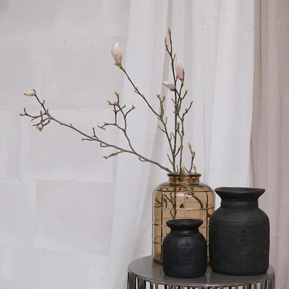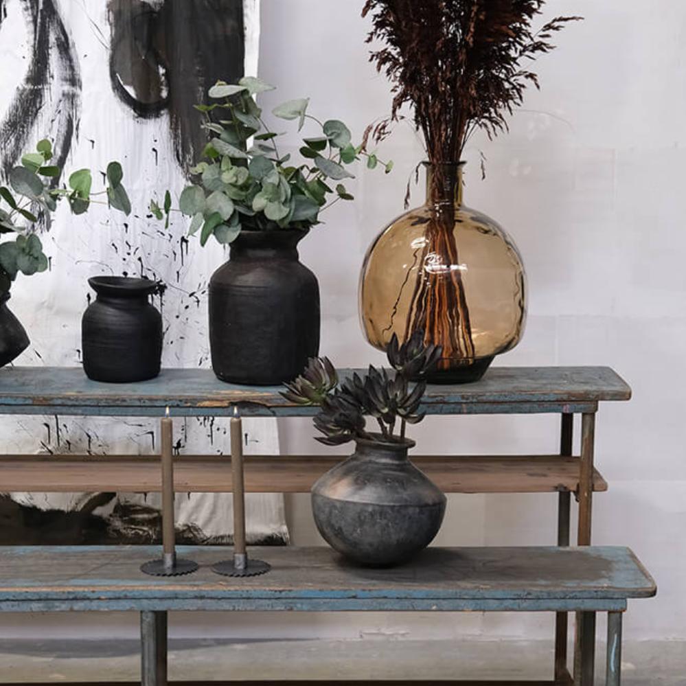 Rami-krukken i medium størrelse bringer varme og tekstur ind i rummet. Den håndlavede overflade i ler og cement giver et råt, men harmonisk udtryk, som passer smukt i både moderne og klassiske hjem. Brug den til tørrede blomster, dekorative grene eller sammen med de andre krukker i serien for et afbalanceret udtryk. BEMÆRK: Krukken kan falme eller ændre farve, hvis den udsættes for direkte sollys eller fugt. Krukken er ikke vandtæt.