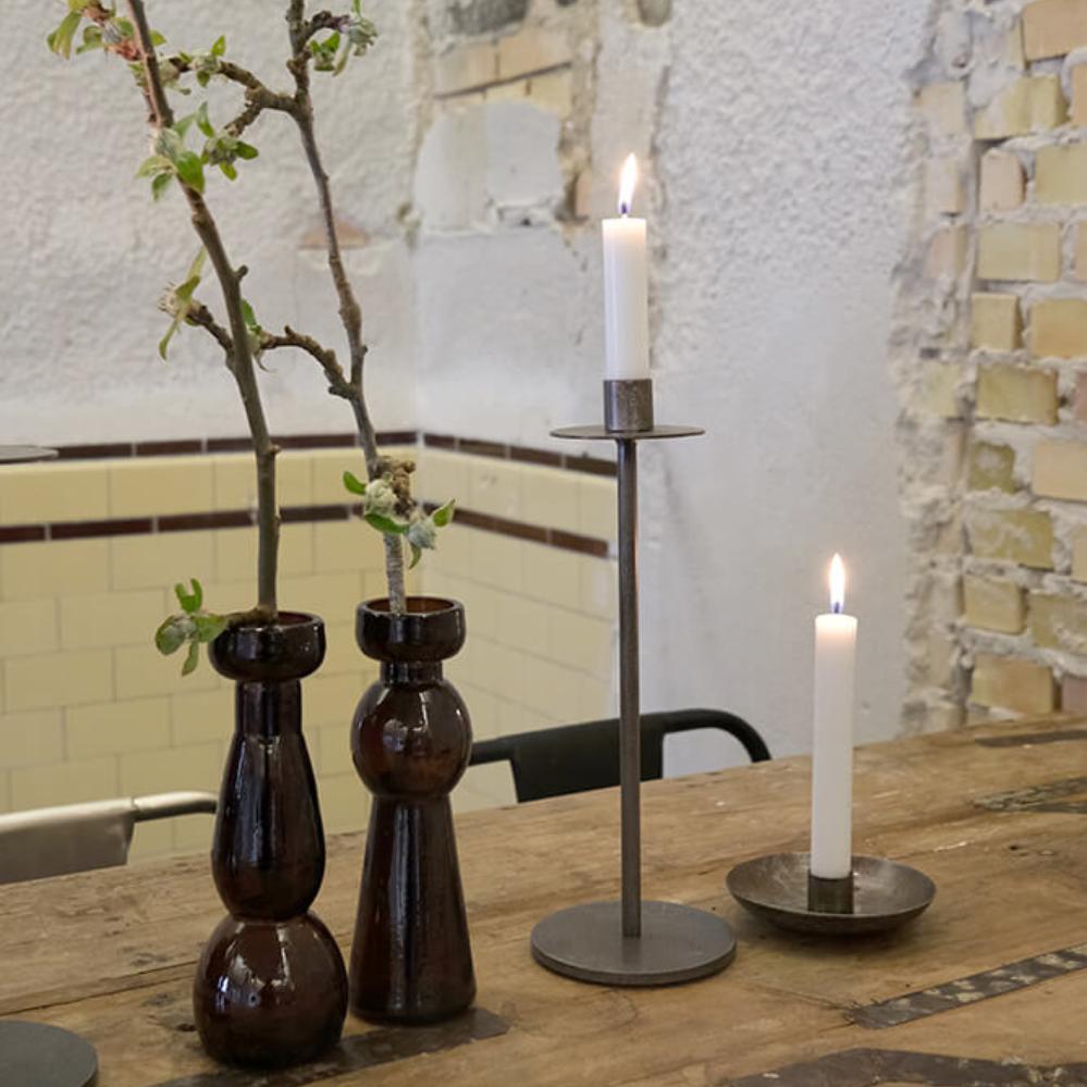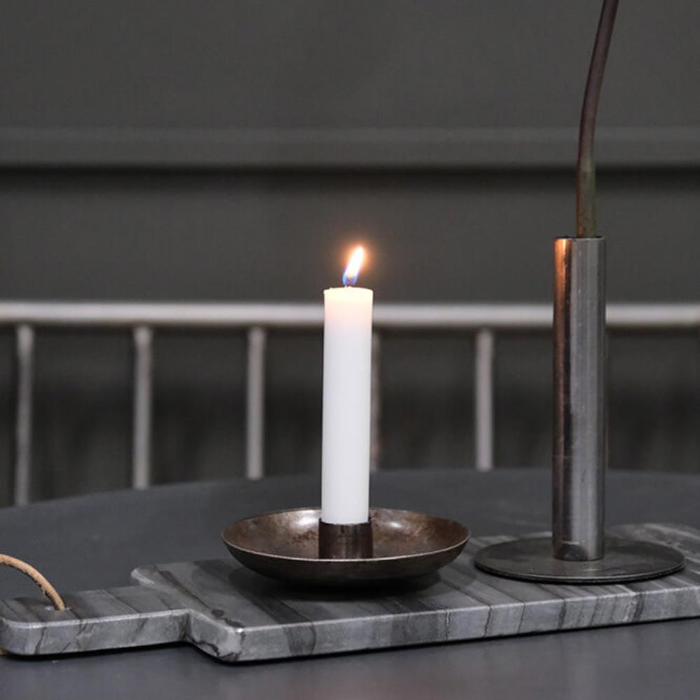 Fin og enkel lille lysestage i metal. Med sit runde design skaber den en hyggelig atmosfære i ethvert rum. Den er specielt designet til at holde et kronelys og giver et smukt og beroligende lys. Placer den på dit spisebord, i vindueskarmen eller hvor som helst, du ønsker at tilføre en stemningsfuld glød. Brug den alene eller placer gerne flere sammen i grupper.