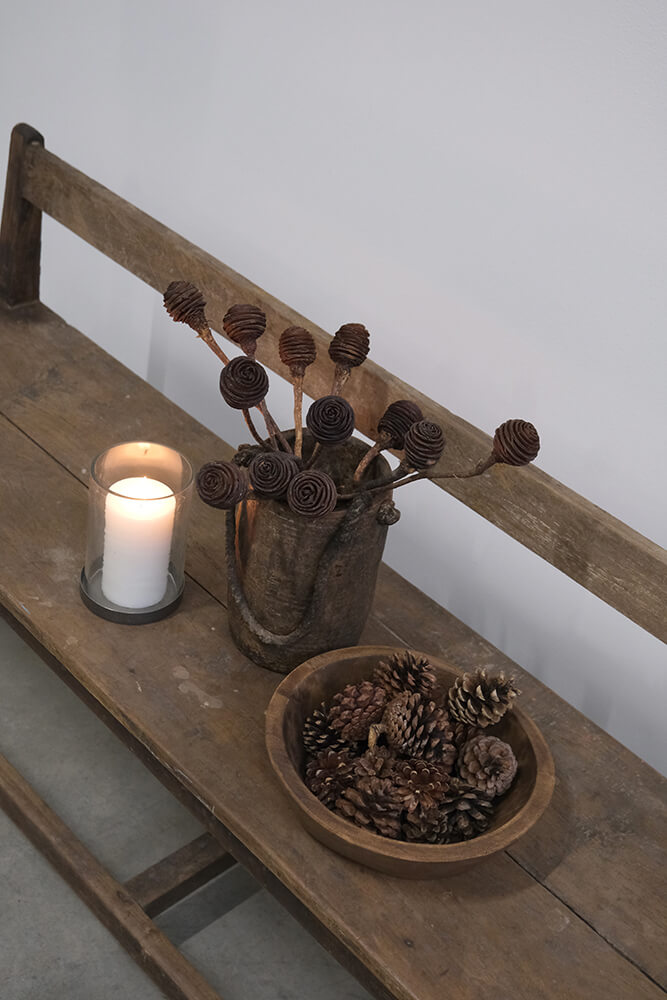 Dette parti gamle Rizwan træskåle har levet et langt og aktivt liv. Hver skål er skåret i træ og bærer tydelige spor af brug, patina og at det er gammelt håndværk. Med en diameter på ca. 20-30 cm varierer de både i form, farve og overflade, hvilket giver hver enkelt sit helt eget udtryk. Brug skålen som frugtskål, dekoration eller til at fremvise småting, og nyd, at du får et stykke indisk historie ind i din indretning.