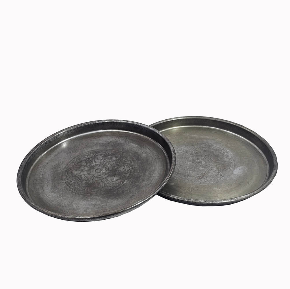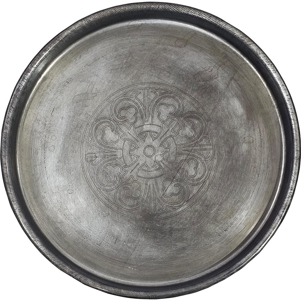 Denne runde bakke med print og en diameter på 40 cm har et råt og elegant udtryk med tydelig inspiration fra gamle håndværkstraditioner. Bakken er udført i metal med en smuk, mat patina, der fremhæver materialets naturlige karakter og giver et autentisk, vintagepræget look. I midten ses et diskret, dekorativt print med et klassisk ornamentalt mønster, som tilfører bakken dybde og visuel interesse uden at virke dominerende. Den let forhøjede kant gør bakken både praktisk og funktionel, da den holder indholdet sikkert på plads. Den er ideel som serveringsbakke, til opstilling af lys og dekorationer eller som et stilfuldt element på sofabordet, spisebordet eller køkkenøen. Et dekorativt og anvendeligt valg til dig, der sætter pris på tidløst design, patina og detaljer med karakter.