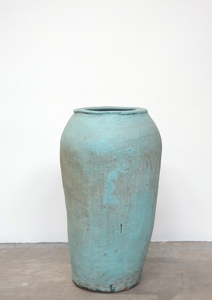 Denne fantastisk gamle krukke i en turkisblå farve, er ideel at bruge til store planter indendørs eller i orangeriet. Med et oliventræ eller citrustræ, vil det lede tankerne mod varmere himmelstrøg. Krukken er håndlavet og brugt til opbevaring af korn og til at have drikkevand i. Krukken er ikke 100 % vandtæt eller frostsikret. Vi anbefaler derfor, at du enten stiller en skål i bunden af krukken eller laver et plastikindlæg. Med denne krukke får du noget smukt og brugt, der har en lang historie med sig og som du kan tilføre endnu en historie på sin rejse i tiden.