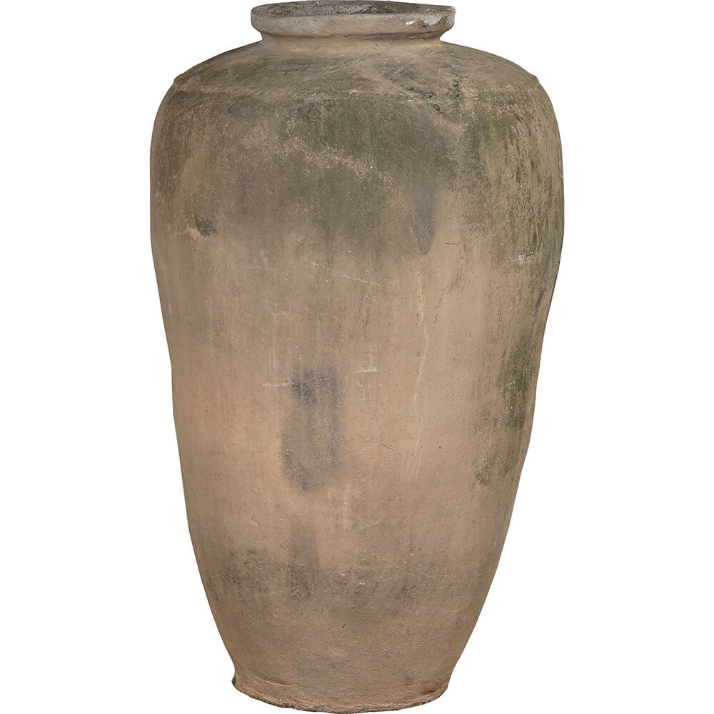 Imponerende gammel lerkrukke med smukke nuancer og brugsspor. Den høje, elegante form og den rå overflade tilfører karakter til ethvert rum. Krukkerne varierer i form, farve og struktur, hvilket gør hver enkelt unik. Med en højde på 110–125 cm er den et imponerende dekorativt element, perfekt til store grene, tørrede blomster eller som blikfang i indretningen. Bemærk: Krukken er ikke vandtæt.