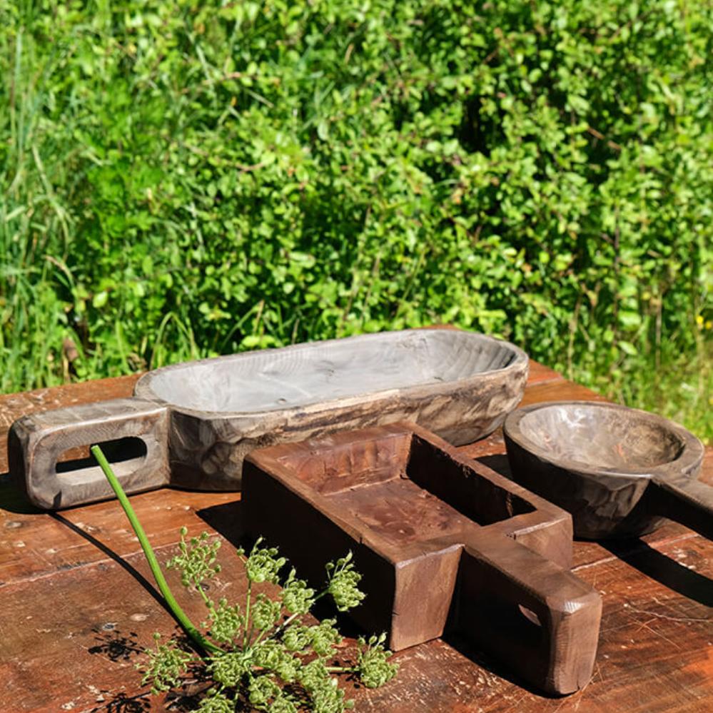 Tag et stykke af naturen med indenfor døren, med en smuk træskål med håndtag. Med et rustikt, naturligt og minimalistisk look, er skålen det perfekte supplement til en nordisk indretningsstil. Brug skålen til krydderurterne i køkkenet, sammen med lys på sofabordet, eller til at opbevare plejeprodukter på badeværelset.