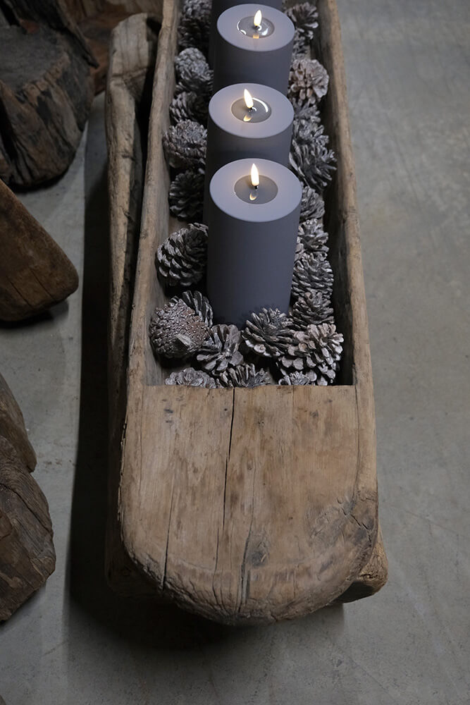 Rustikt og aflangt træfad. Træfadet er meget dekorativt og har med sin størrelse mange stylingsmuligheder. Er perfekt til blomsterdekorationer, samt på spisebordet med store og mange lys eller andre nips. Alle fadene er helt unikke og kan derfor variere i struktur og udseende. STØRRELSEN KAN VARIERE MEGET! +/- 5 cm i højden +/- 10 cm i bredden +/- 30 cm i længden