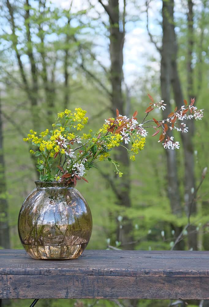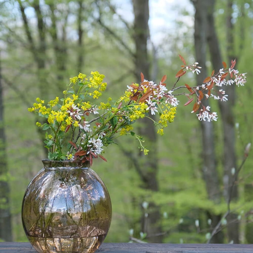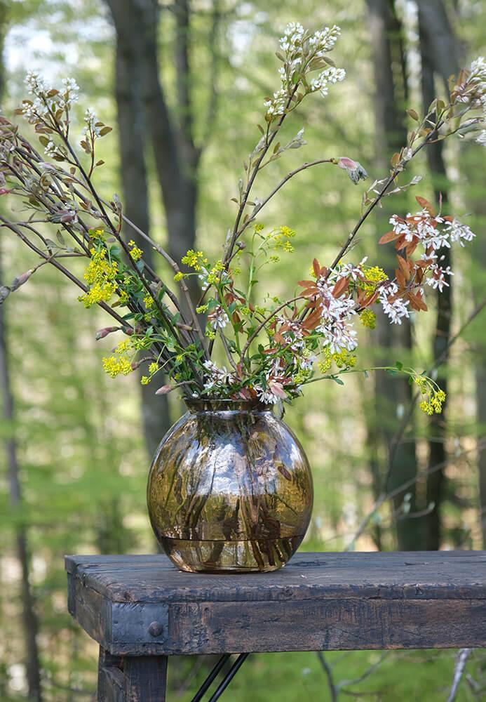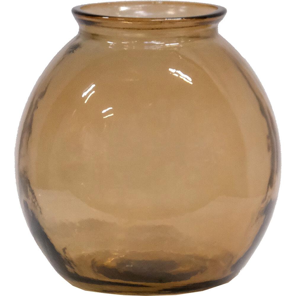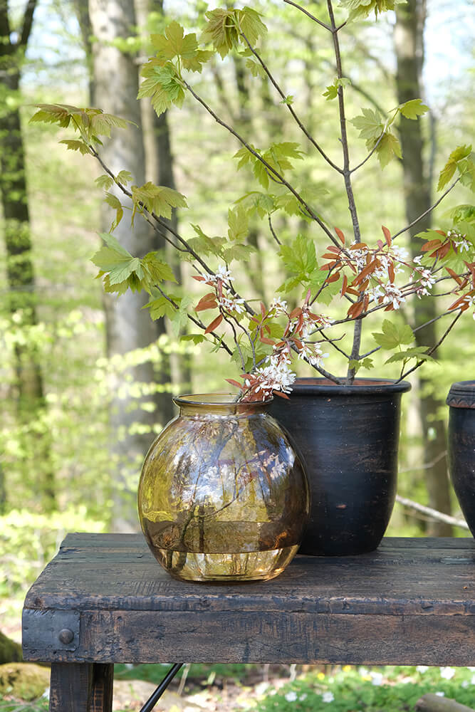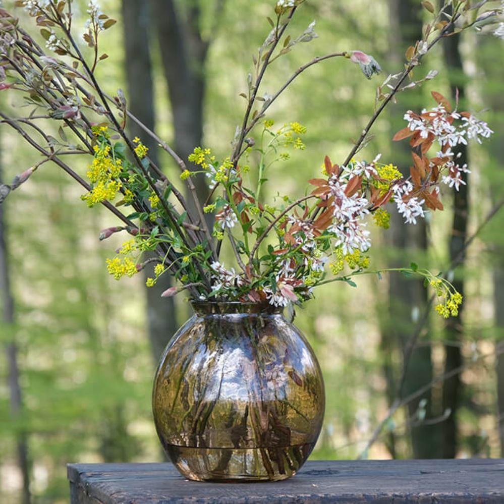 Tilføj lidt ekstra stemning med denne vase af genanvendt glas. Vasens buttede form og røgfarvede nuance, gør den til et charmerende lille indretningssupplement. Glasvasen kan også bruges til små LED-lys eller blomster, hvis du ønsker at skrue op for hyggen.