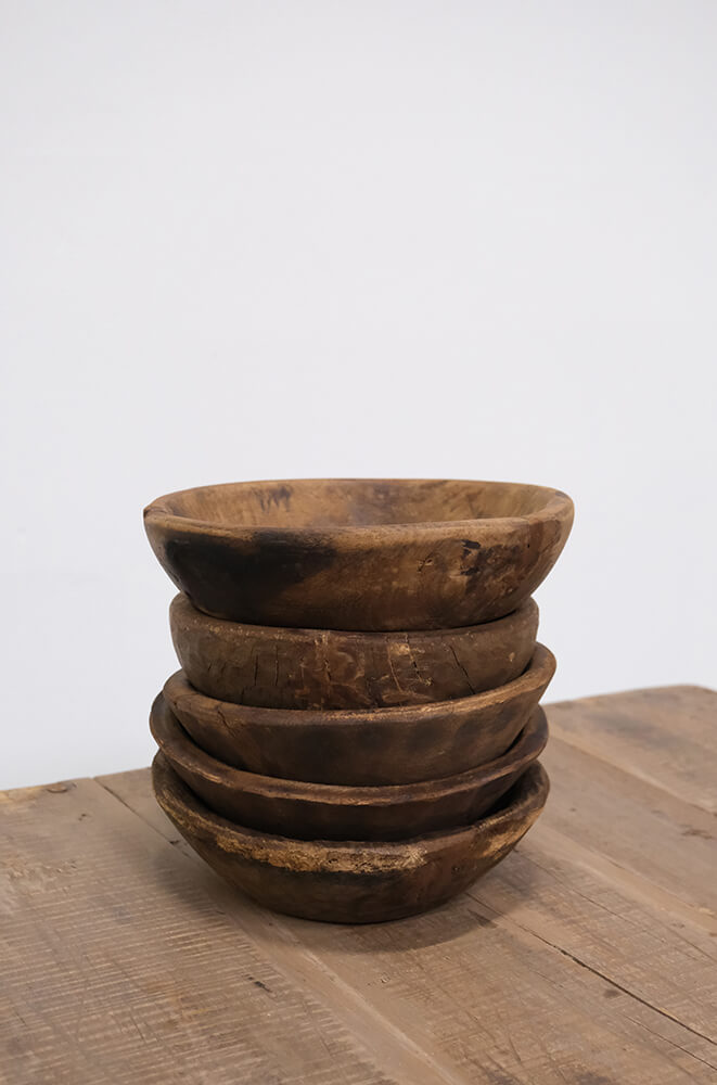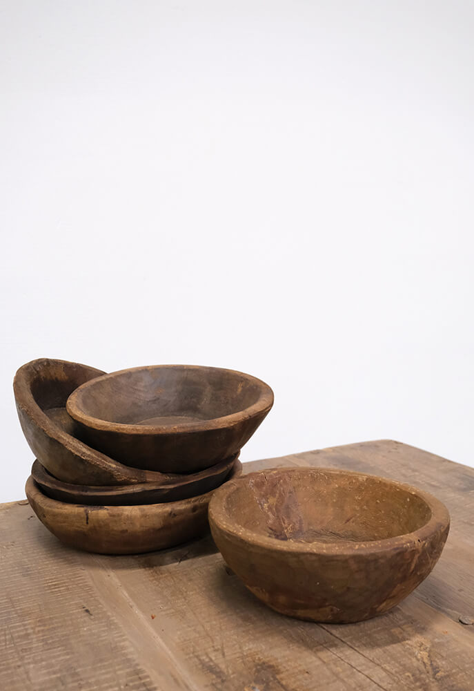 De her gamle træskåle er fulde af charme og personlighed. Hver eneste én. De varierer i størrelse og udtryk, og netop det gør dem så skønne. Nogle har små revner, andre har spor af slid eller mørke nuancer i træet, men fælles for dem er, at de bærer på masser af historie og et helt unikt håndlavet præg. Brug dem som frugtskåle, til servering af snacks, til dekoration på spisebordet eller som en smuk base for stearinlys og tørrede blomster. De fungerer både enkeltvis og i stakke, hvor de skaber et varmt og rustikt look. Hver skål er forskellig, så du får ikke bare en brugsting; du får et lille stykke håndværk, der bringer naturlig patina og varme ind i indretningen. Et perfekt valg til dig, der elsker ting med charme og ægthed.
