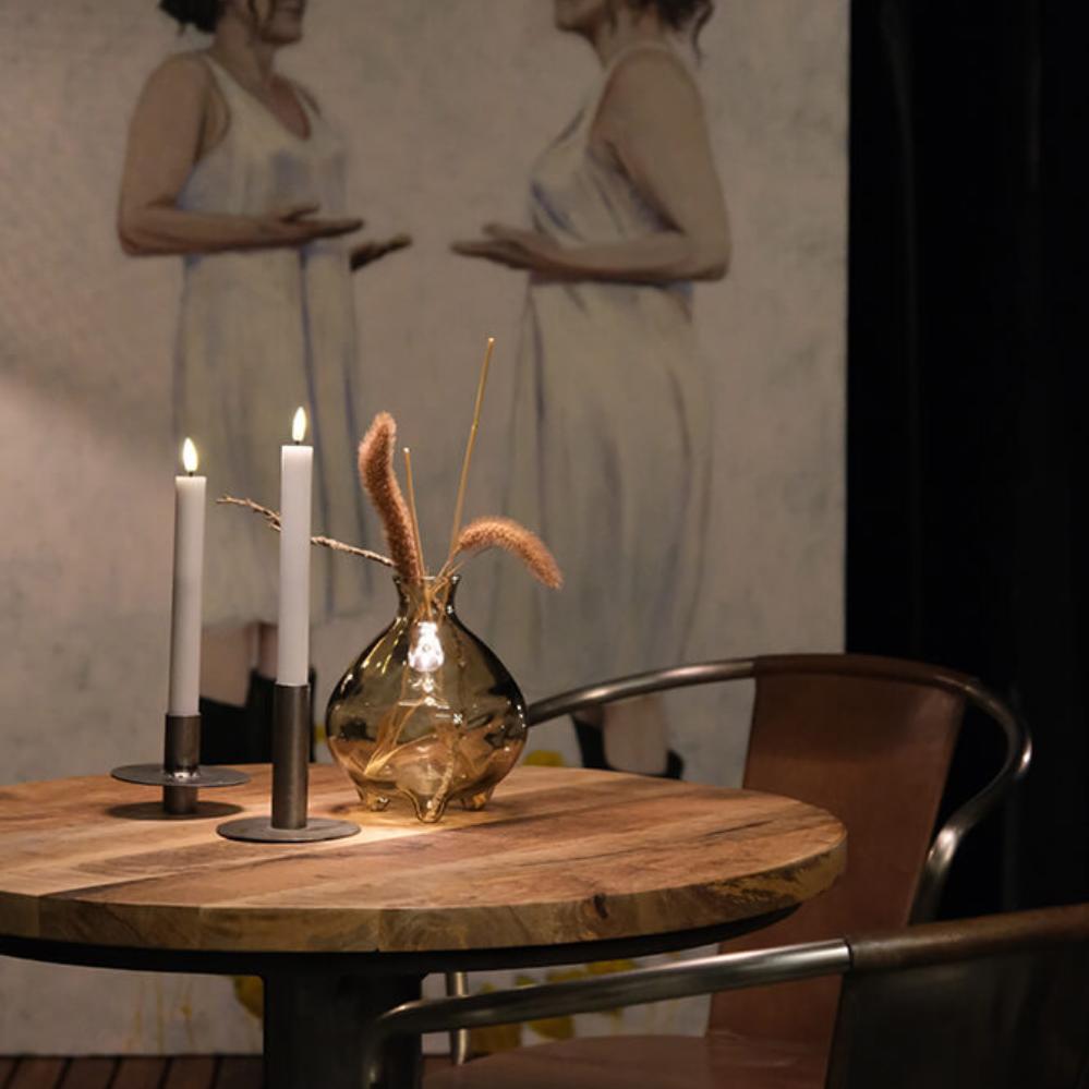 Denne runde bordplade med en diameter på 70 cm er fremstillet i massivt mangotræ, kendt for sin styrke og de varme farvenuancer i træets struktur. Hver bordplade har sit helt eget udtryk, da åretegninger og farvespil varierer naturligt fra plade til plade. Mangotræet giver bordpladen et rustikt og autentisk look, der gør den oplagt til brug i både private hjem, caféer og restauranter. Den runde form skaber et hyggeligt samlingspunkt, perfekt som cafébord eller som en mindre spiseplads i hjemmet. Kombinér bordpladen med et af vores mange understel i metal og skab dit helt personlige bord med masser af karakter.