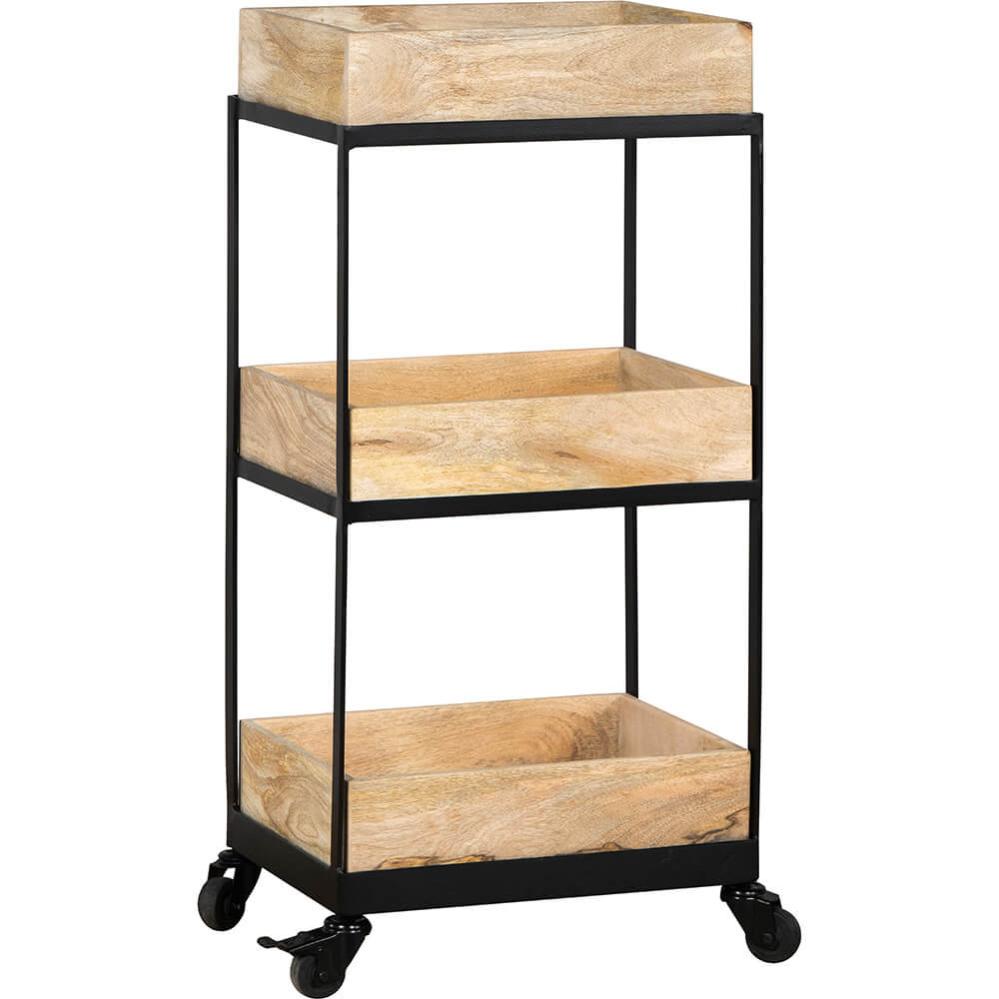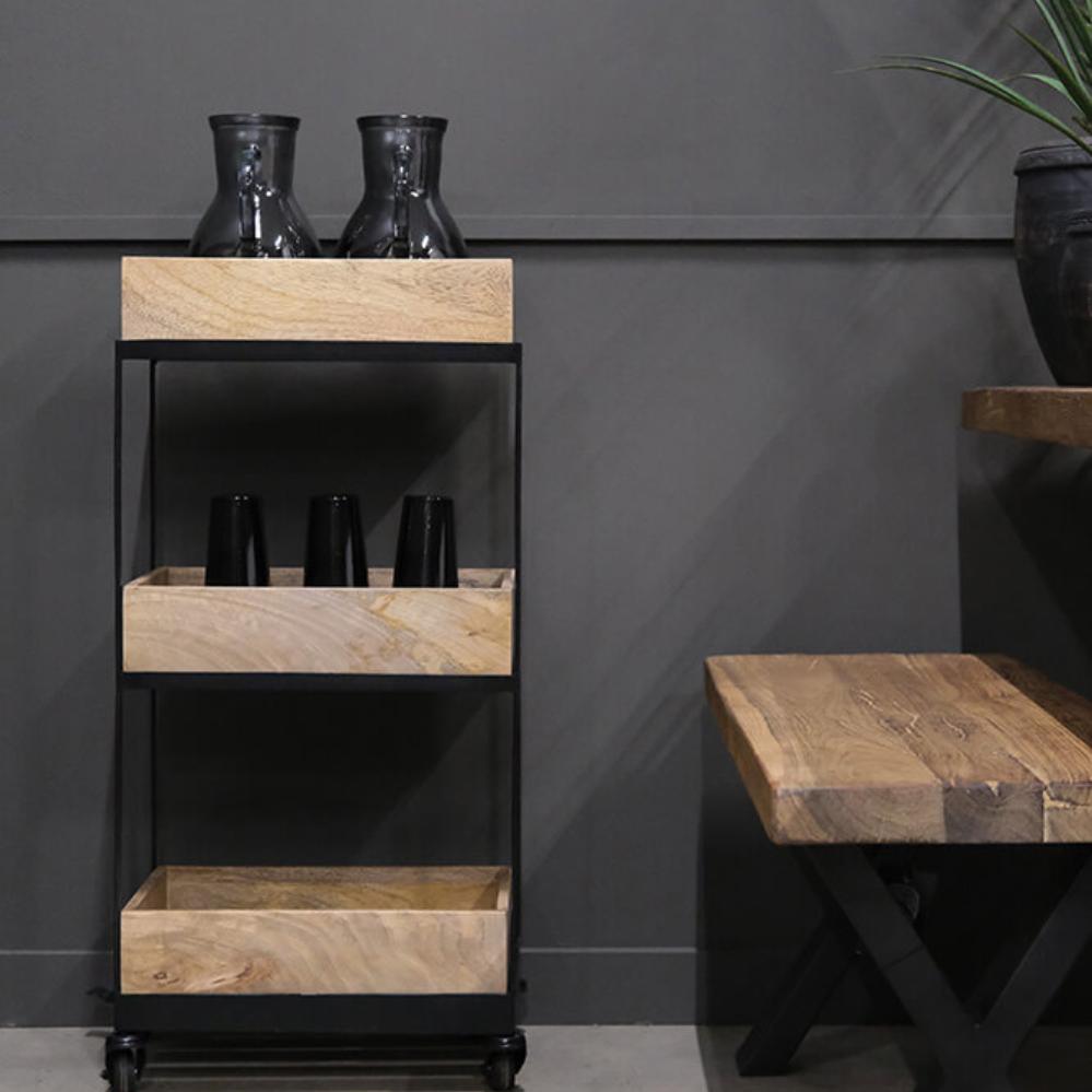 Forén praktisk opbevaring med rustik appel med vores rullevogn i jern, udstyret med tre aftagelige træbakker. Denne alsidige vogn tilbyder ikke kun bekvem opbevaring, men tilføjer også et strejf af naturlig skønhed til ethvert rum. Brug den i køkkenet til at organisere krydderier, i badeværelset til toiletartikler eller i stuen til at vise dine yndlingsdekorationer. Med hjulene kan du let flytte den rundt efter behov. Vores jernrullevogn med træbakker er den ideelle løsning til en praktisk og stilfuld indretning.