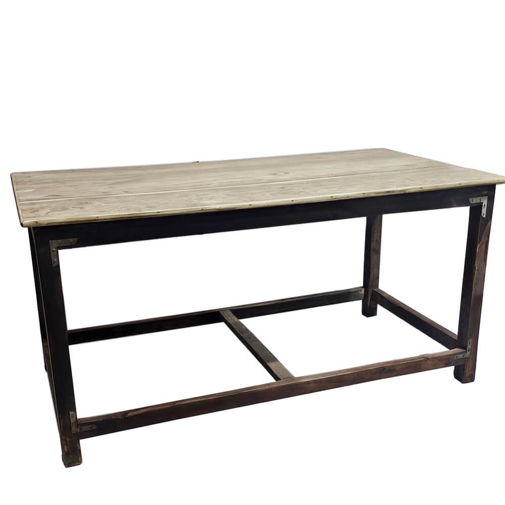 Denne gamle disk forener det rå og det enkle i et rustikt udtryk. Med sit mørke, robuste træstel og den lidt lysere bordplade i naturtræ får du en disk, der balancerer patina og funktion på fineste vis. De synlige metalbeslag og samlinger giver et industrielt præg, uden at det bliver for tungt. Disken er oplagt i butikken som displaybord eller som arbejdsstation i caféen, hvor det visuelle spiller en lige så vigtig rolle som det praktiske. Du kan også bruge den hjemme som køkkenø eller arbejdsbord, alt efter hvad din indretning kalder på. Et møbel med kant, karakter og masser af anvendelsesmuligheder. Et lille tip ville være at montere nogle store hjul under, så den nemt kan flyttes rundt.