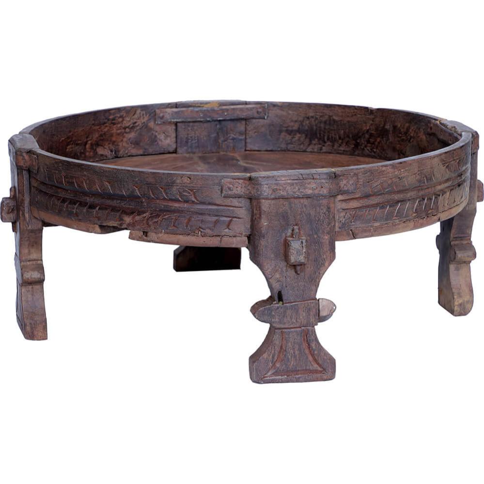 Er du på udkig efter noget smukt og brugt er her et perfekt lille møbel. Dette lille indiske sofabord har tidligere været brugt til at kværne korn i. En sjov lille detalje: I siden på bordet kan du se, at der har været et lille hul. Dette hul er blevet brugt til at skubbe det kværnede korn ud af. Alle bordene er original gamle og forskellige i både størrelse, farve og finish. Fælles for dem alle er at de er unikke. Med dette skønne lille bord kan du tilføre din indretning en eye-catcher.