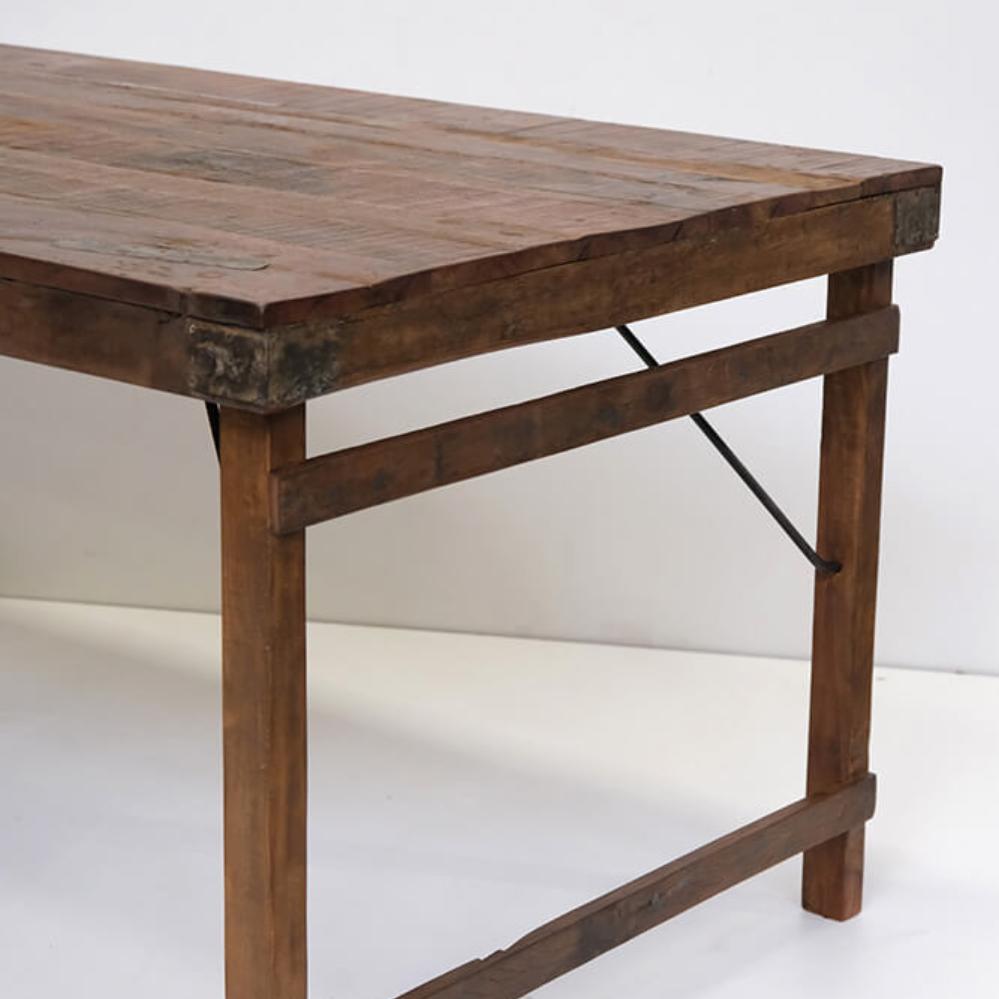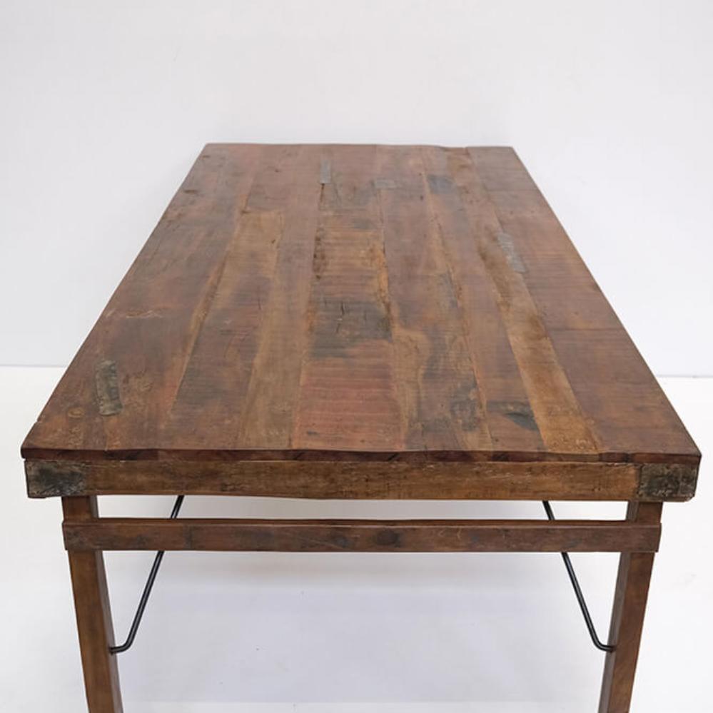 Dette spisebord er både rustikt og unikt og det har masser af historie med sig. Bordet er fremstillet af genanvendt træ og det er i sig selv med til, at føre historie ind i din indretning. Vintage bordet kan tilføre den helt særlige stemning til din indretning, som de fleste vil elske. Bordet er semihåndlavet, og derfor vil du nemt kunne se de mange uregelmæssigheder i det smukke træ, hvilket er en ekstra charme til bordet. Bordene er mellem 170 - 180 cm lang. Desuden varierer dybden mellem 80 og 90 cm. Find en matchende bænk under varenummer: SG1801