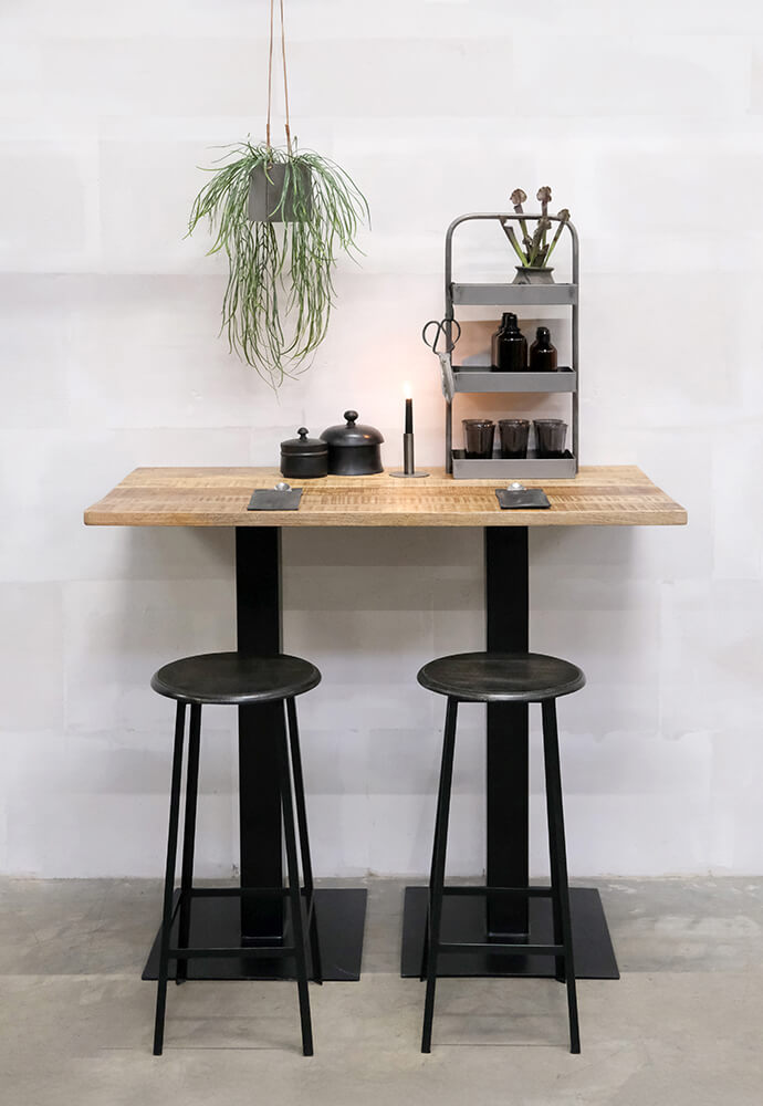 Kom højt til bords med Kafka. Dette høje understel i sortlakeret jern åbner op for mange muligheder. Tilsæt en bordplade og brug det til stående taffel eller kombinér sættet med høje barstole for en hyggestund. Dette understel passer til næsten alle vores rå bordplader, som du finder her på shoppen. (60x70, 70x70, 60x60, Ø 60, Ø 70 og Ø 80). Ved større bordplader kræves 2 stel. Tilføj eventuelt et par af vores lækre barstole, for en gennemført indretning. Diameter fod 50 cm. / top 25 cm.