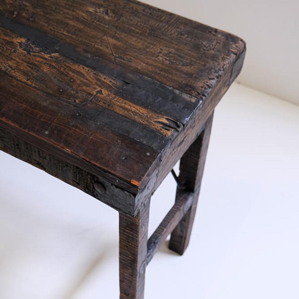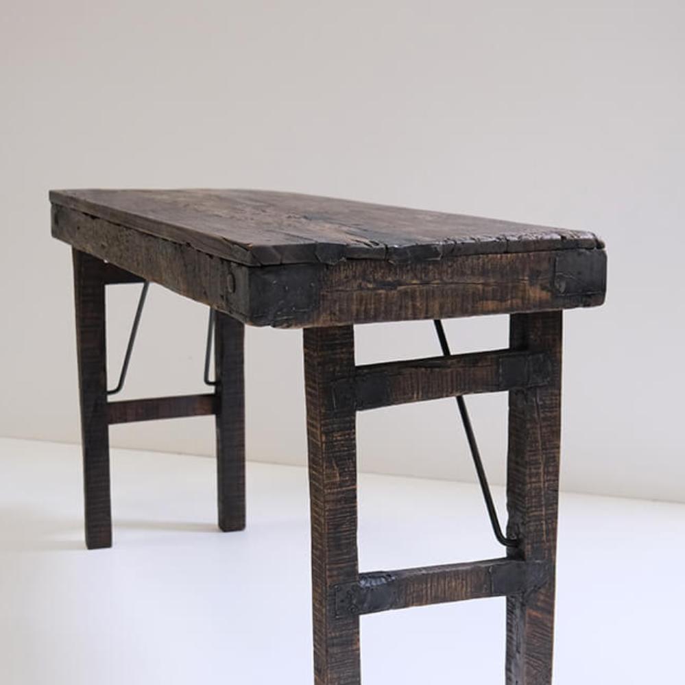Enkelt og stilfuldt konsolbord fremstillet af mørkt genanvendt træ. Bordet har et naturligt, rustikt look, som passer ind i mange forskellige indretningsstile. De mørke farvetoner tilføjer varme og tekstur til dit rum mens bredden gør, at bordet kan være i både små og store rum. Konsolbordet kan f.eks. bruges i entréen eller som et sted til at fremvise dine yndlingsbilleder og planter i stuen.