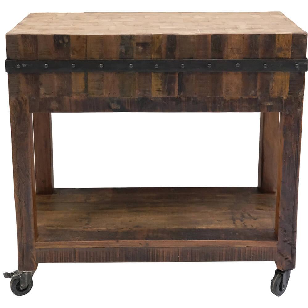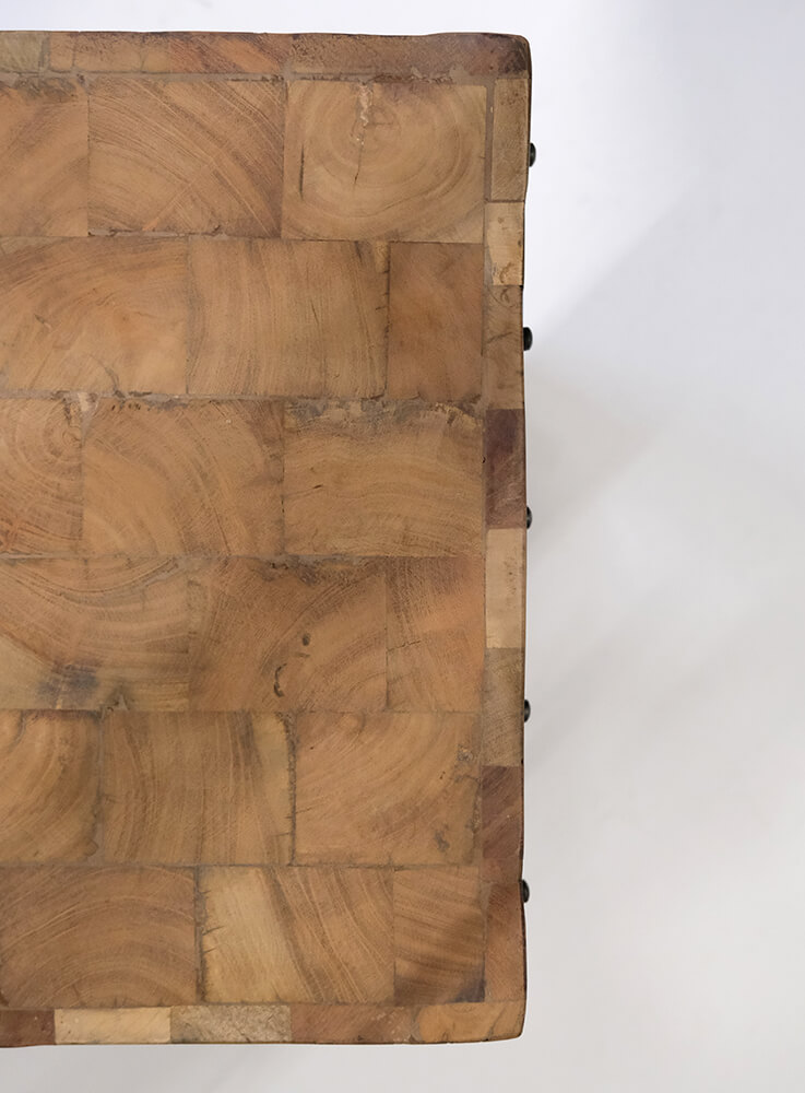Vores store butcherblok i genanvendt træ og jern kombinerer rustisk charme med praktisk funktionalitet. Med sin robuste træoverflade, rå detaljer og nitter, tilføjer dette møbelstykke karakter til ethvert køkken eller spisestue. De monterede hjul gør det nemt at flytte rundt, mens en praktisk opbevaringshylde tilføjer ekstra opbevaringsplads til dine køkkenredskaber. Skab en praktisk og rå arbejdsstation med vores butcherblok, der giver både stil og funktion i ét. Slagterblokken fås også i en matchende kvadratisk version i samme højde (SG06081).