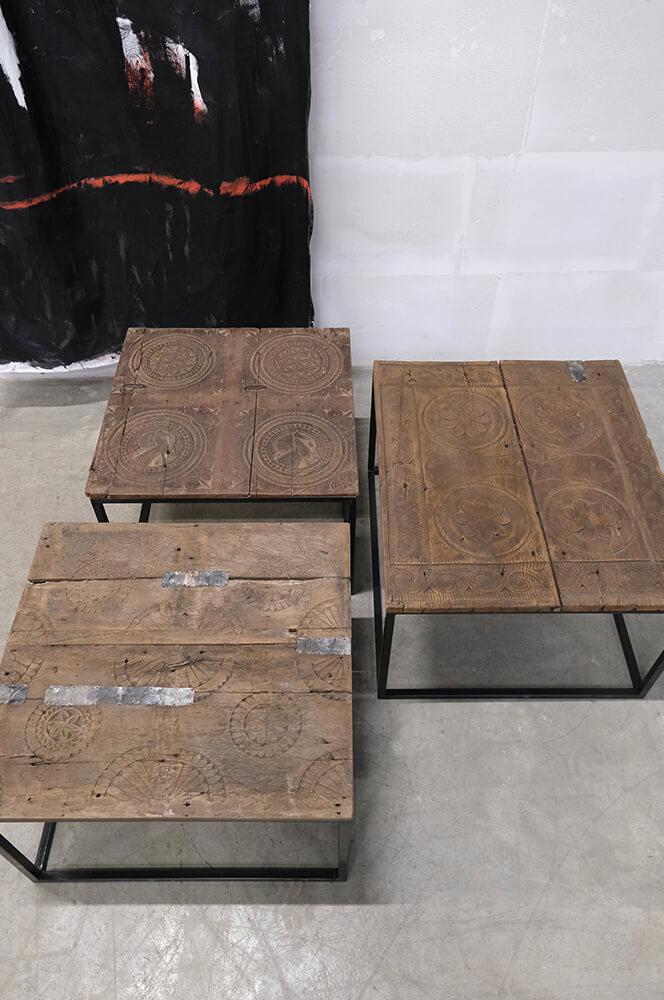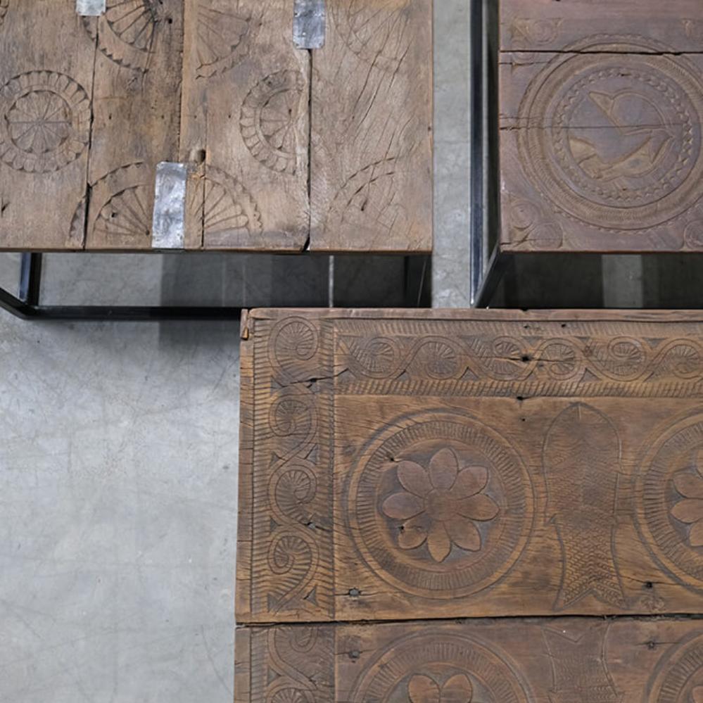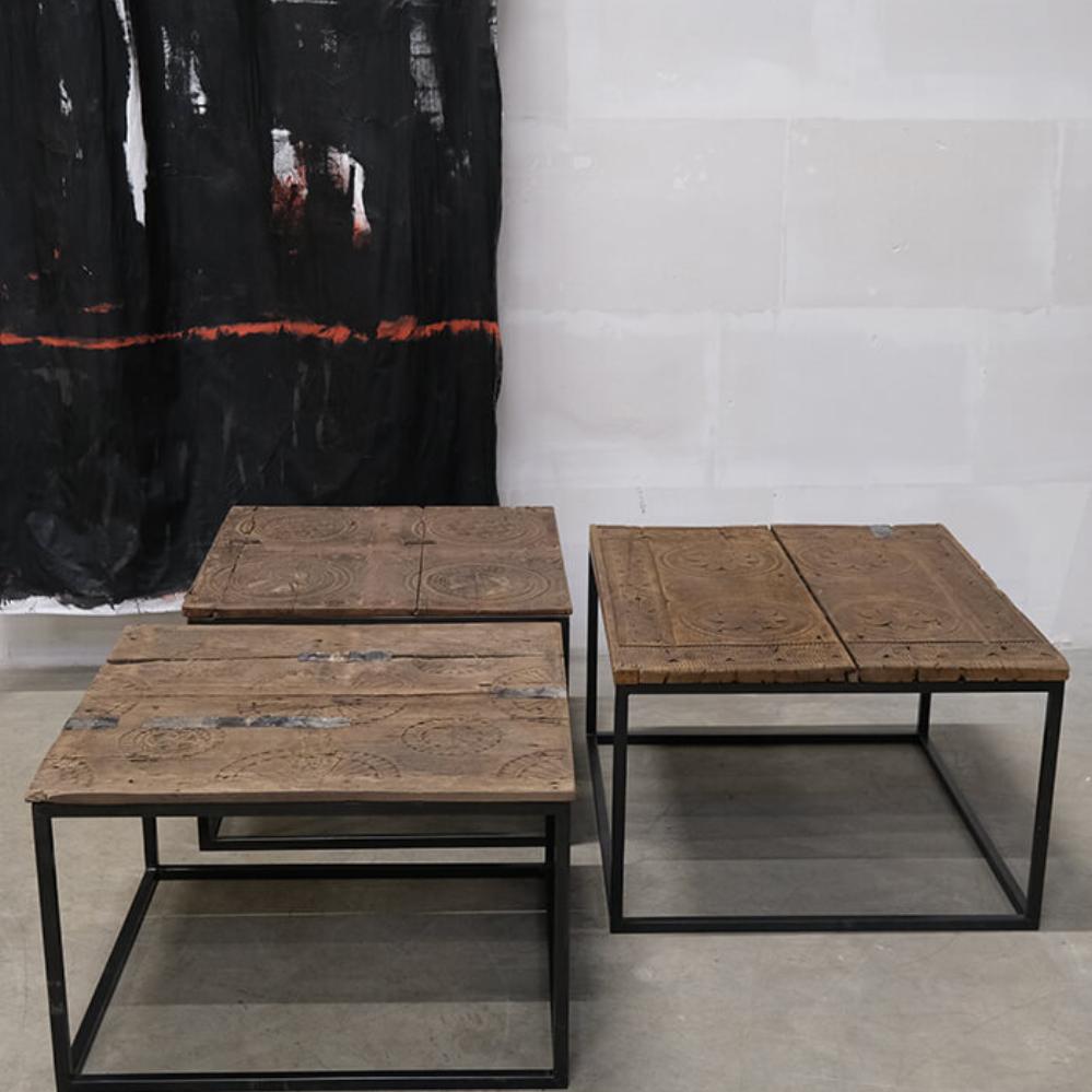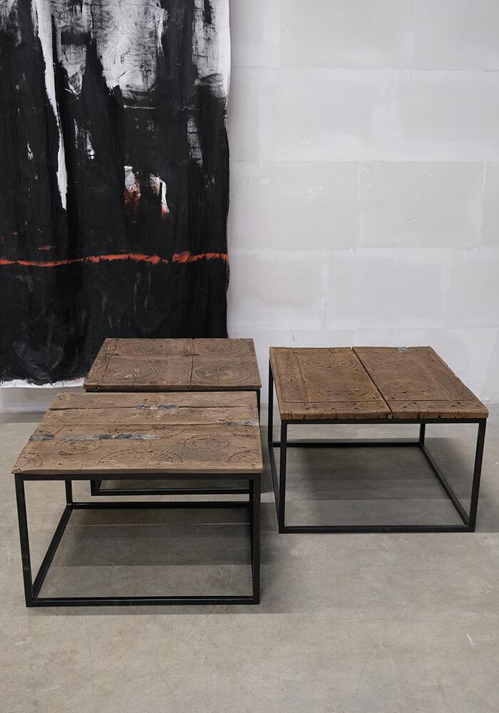 Dette sofabord er en blanding af rustik charme og moderne enkelhed. Bordpladen er skåret til af en gammel dør, der bærer spor af sin historie gennem smukke udskæringer og autentisk patina. De indlagte jernstrimler dækker større revner i træet, og tilføjer samtidigt et strejf af industrielt stemning og understreger bordets rå look. Stellet er lavet af sortlakeret jern, hvilket skaber en stærk og minimalistisk base, der fremhæver bordpladens detaljer. Sofabordet er perfekt som et statement-møbel i stuen, hvor det vil bidrage med masser af karakter, eller som bord i loungemiljøet i din restaurant eller på dit kontor. Forestil dig de samtaler et sådan bord kan starte. Her får du et sofabord, der kombinerer funktionalitet med historie og sjæl. Bemærk at alle sofabordene er forskellige i udskæringerne og reparationer, og at størrelsen kan variere en smule.
