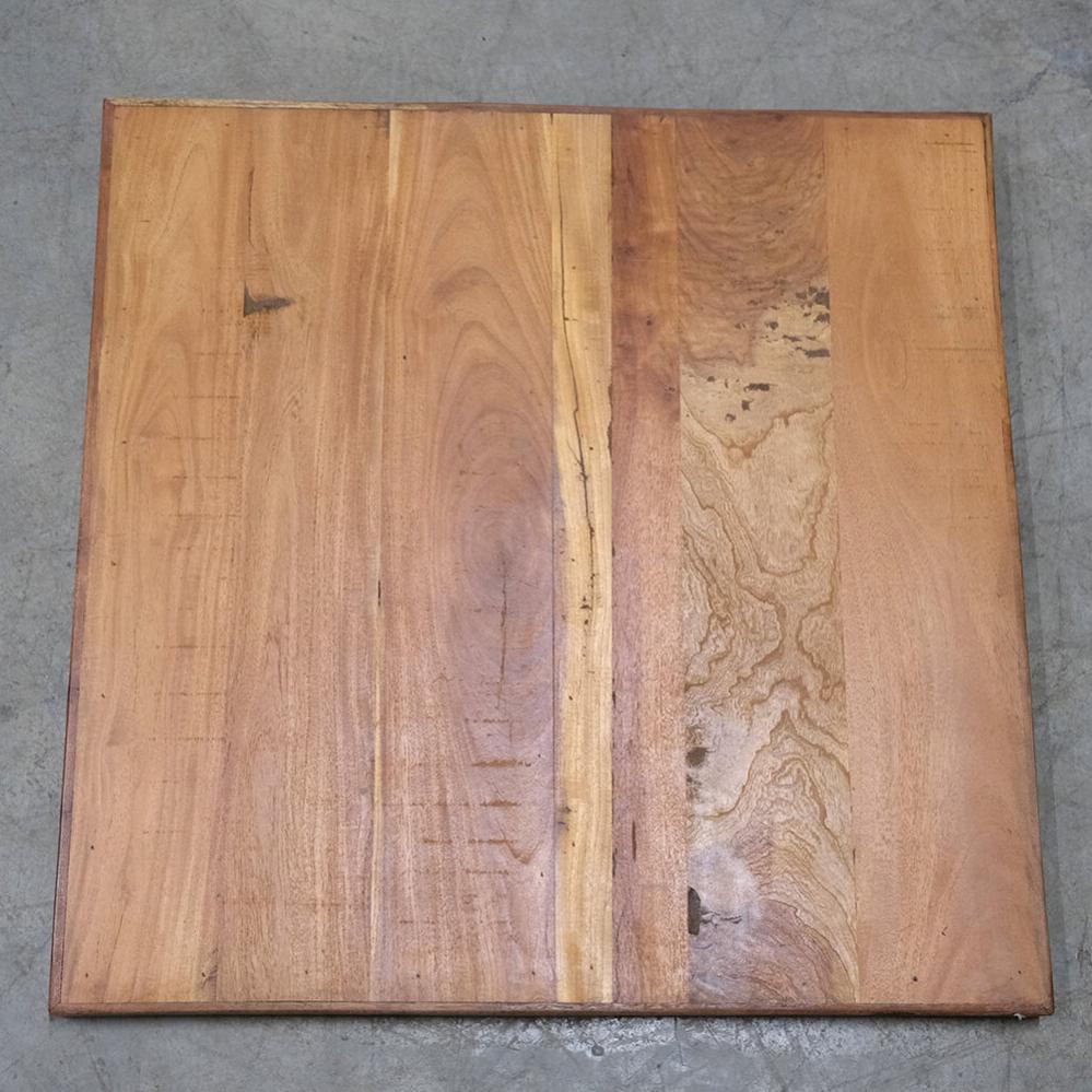 Lys og charmerende kvadratisk bordplade på 70 x 70 cm, fremstillet af patineret genanvendt træ. Træets naturlige spil og unikke detaljer fremhæves af en sandblæsning og en mat lak, der sikrer et råt, men beskyttet look. Da bordpladen er lavet af genanvendt træ, vil farvenuancerne variere og give hver plade sit helt eget udtryk. Passer til de fleste af vores understel og er et oplagt valg til dig, der elsker møbler med sjæl og historie.