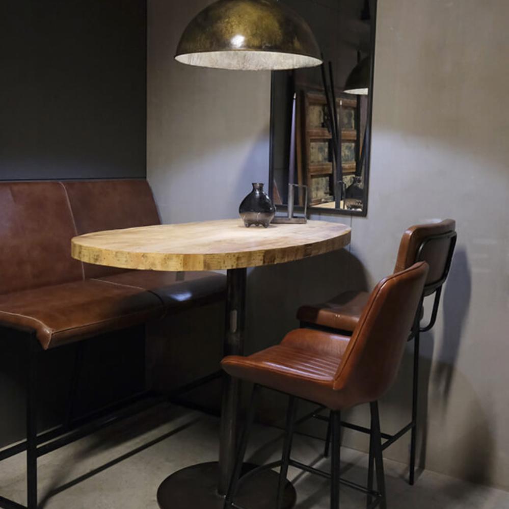 Dette høje jernstel er fremstillet i robust klarlakeret jern, der giver det en rå og industriel karakter. Den høje, slanke konstruktion kombinerer en enkel søjle med en solid, rund base, hvilket sikrer både stabilitet og et minimalistisk udtryk. Den klarlakerede overflade giver en diskret glans, som både beskytter stellet og tilføjer et strejf af industriel stil. Brug f.eks. stellet med en træbordplade, der kan skabe en moderne kontrast. Perfekt til indretninger, der værdsætter funktionalitet med kant. Dette understel passer til næsten alle vores rå bordplader, som du finder her på shoppen. Op til 70 cm lange bordplader eller bordplader med Ø80. Ved større bordplader end det skal du bruge 2 stel. Diameter fod 55 cm. / top 55 cm.
